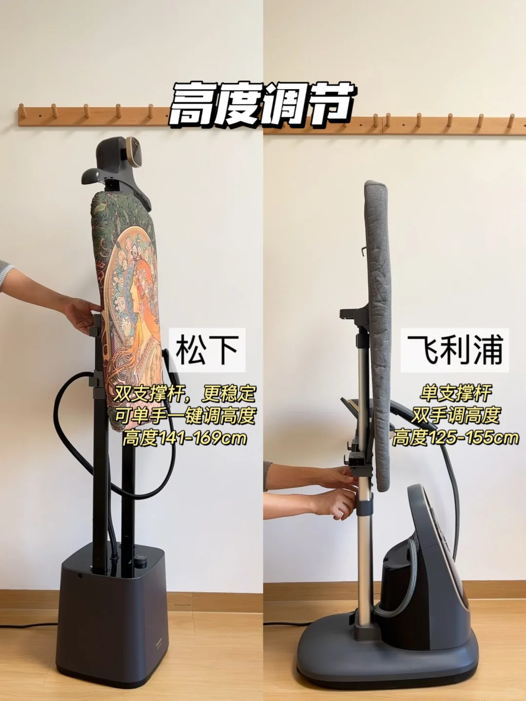 🟡飞利浦AI8540,熨烫板也可0-90度无极调节,熨烫很方便!单支撑杆,高度可125-155cm范围调节。