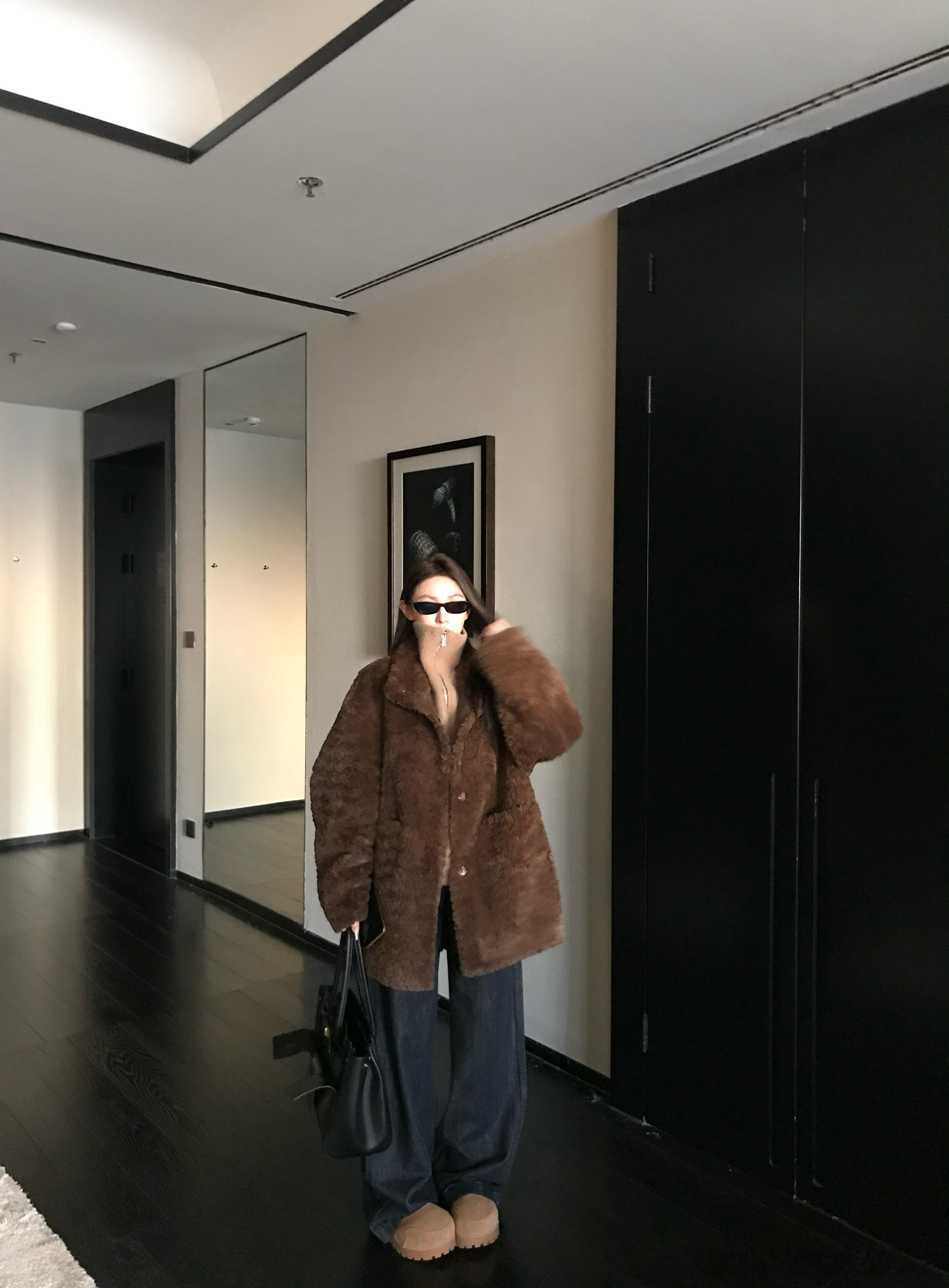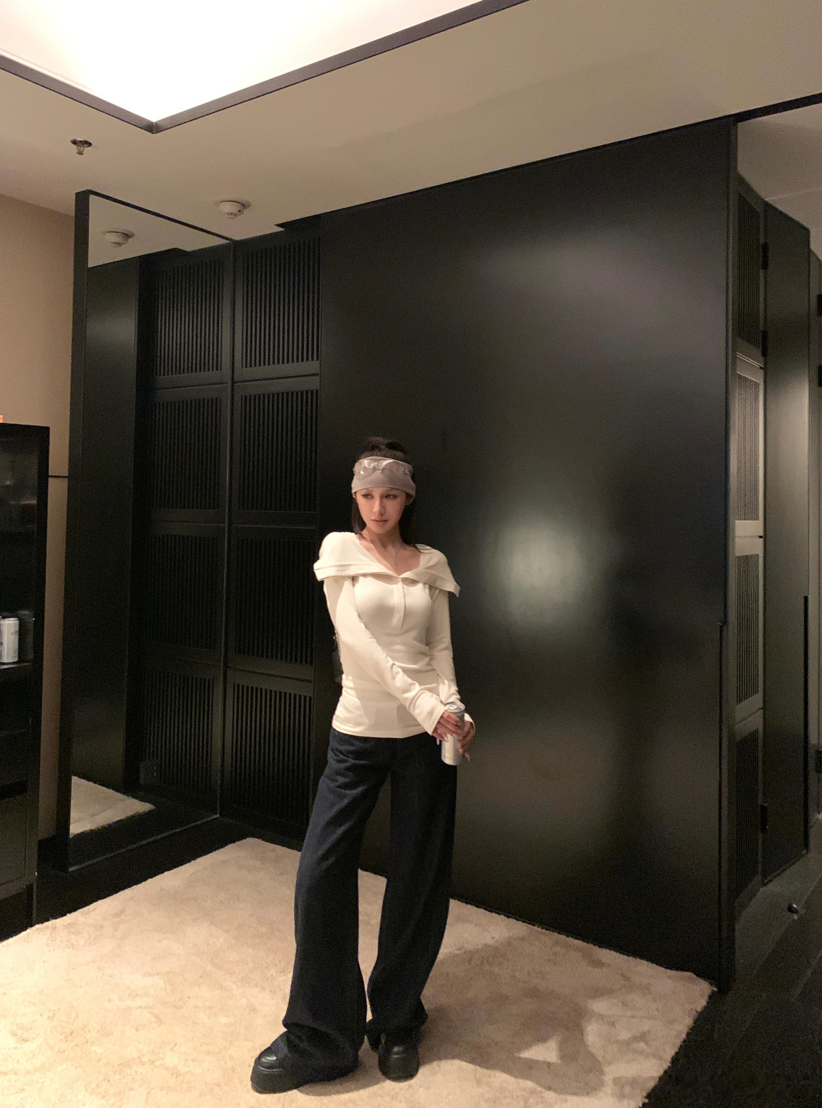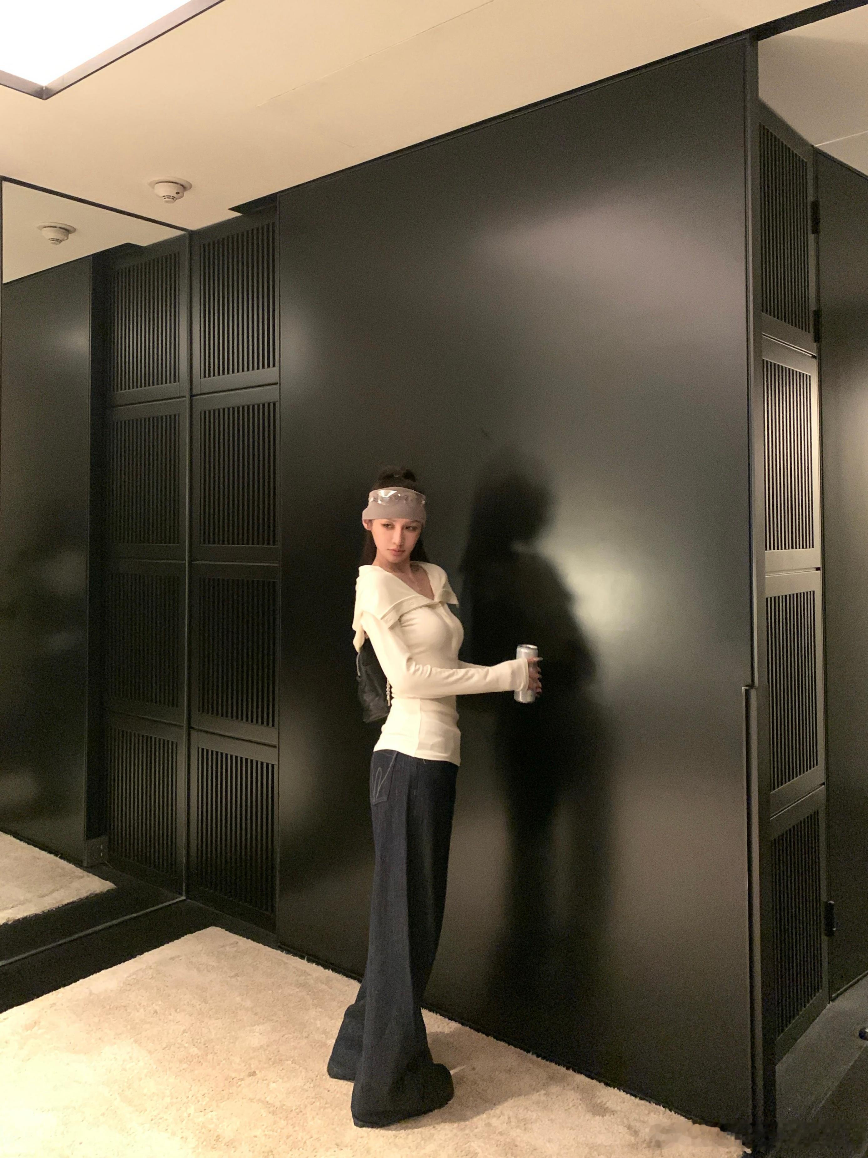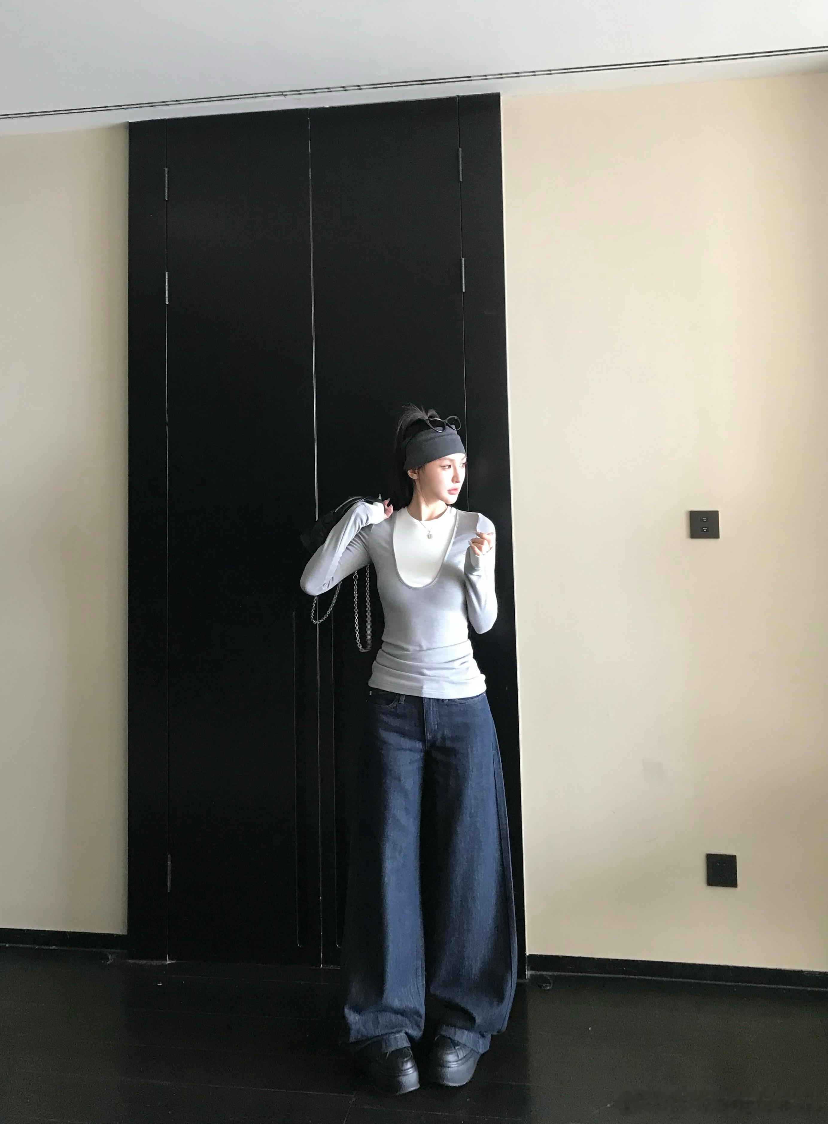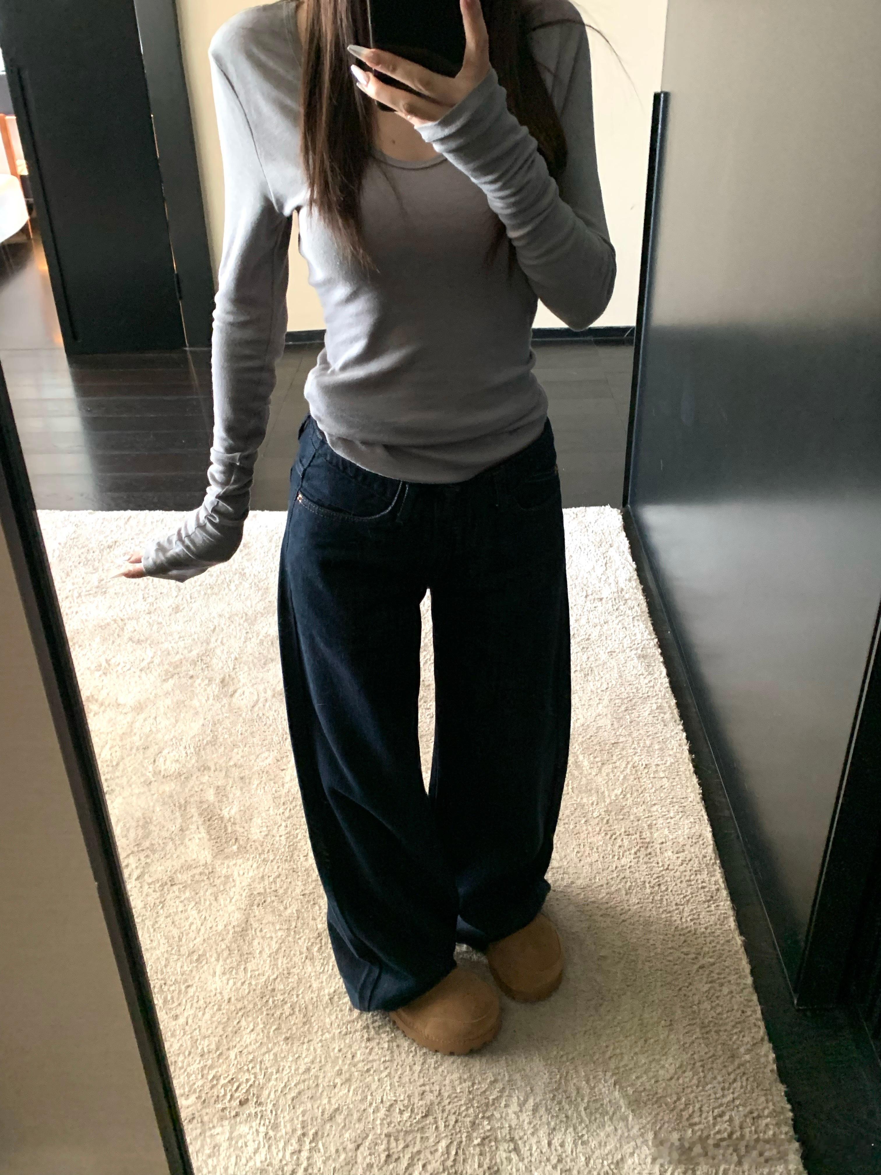 这款最近很火的原色牛仔裤保留了牛仔布最原始的状态 整体利落的直筒版型非常修饰腿型
