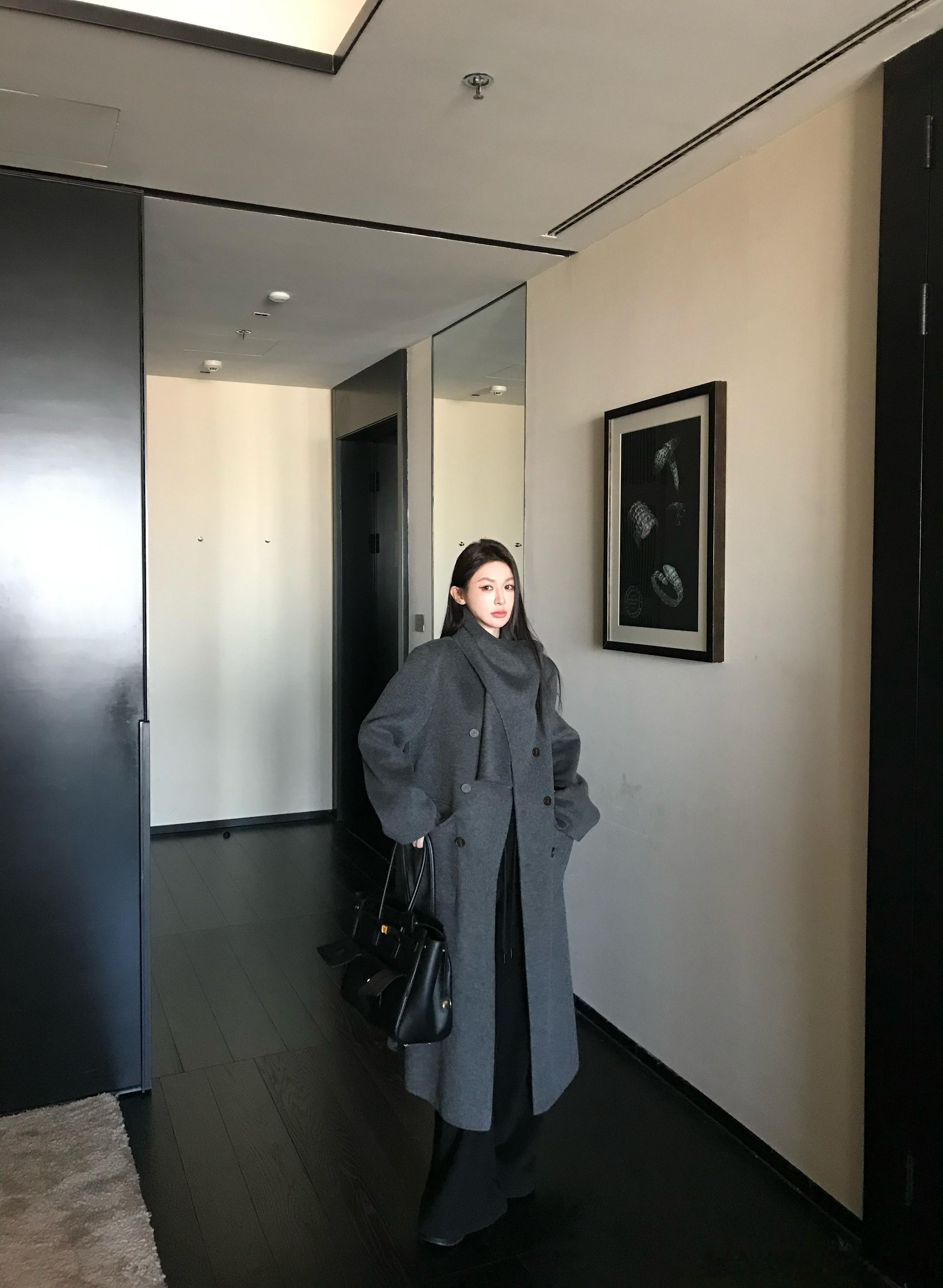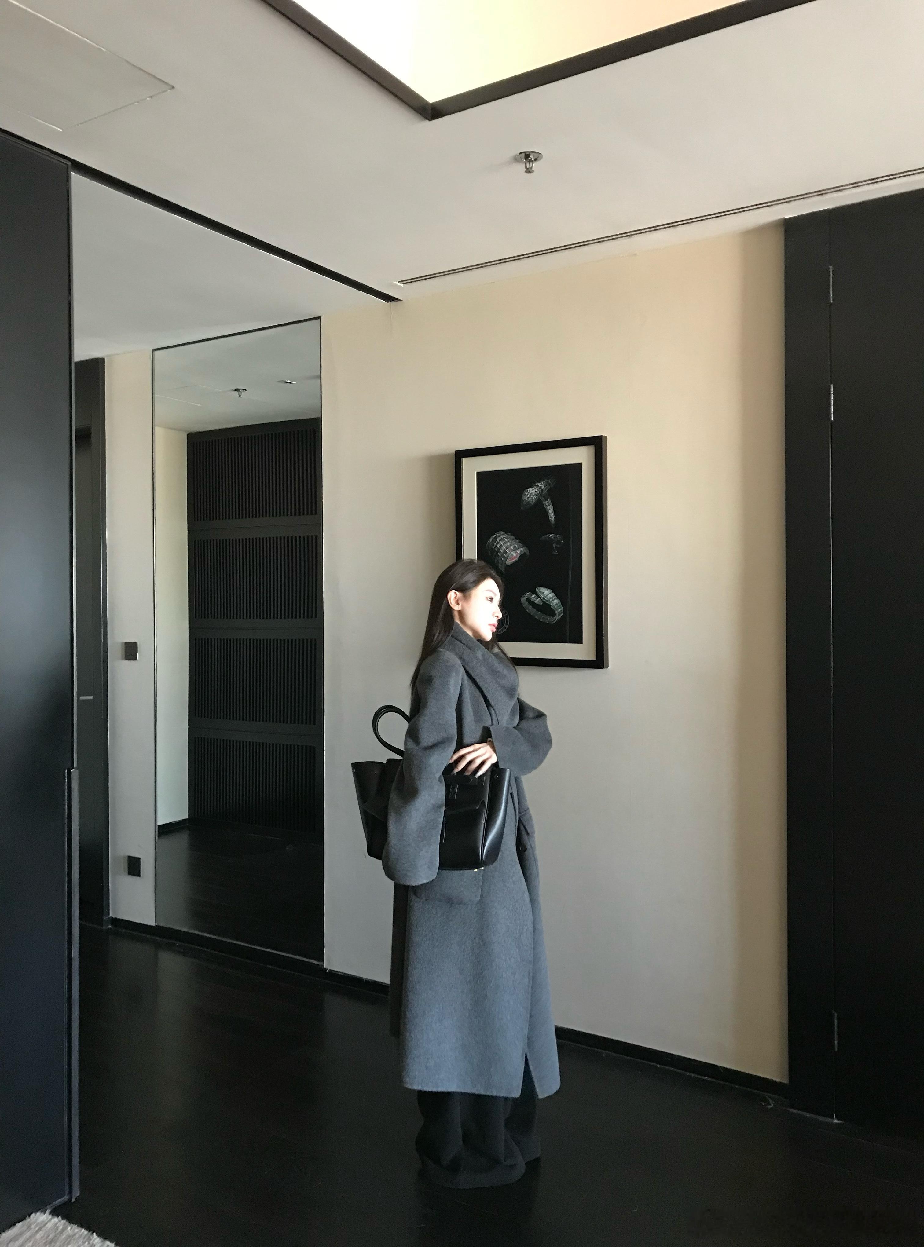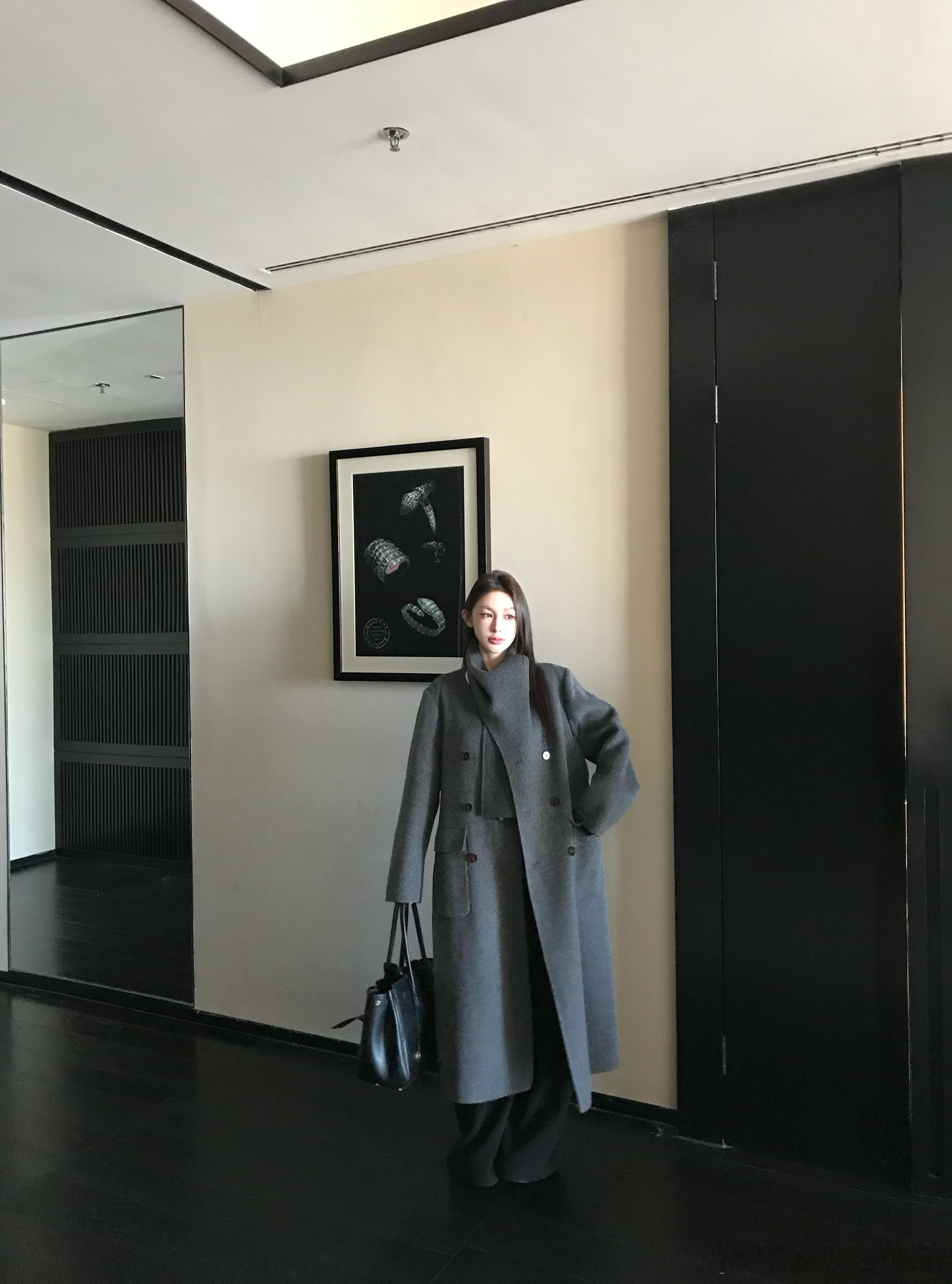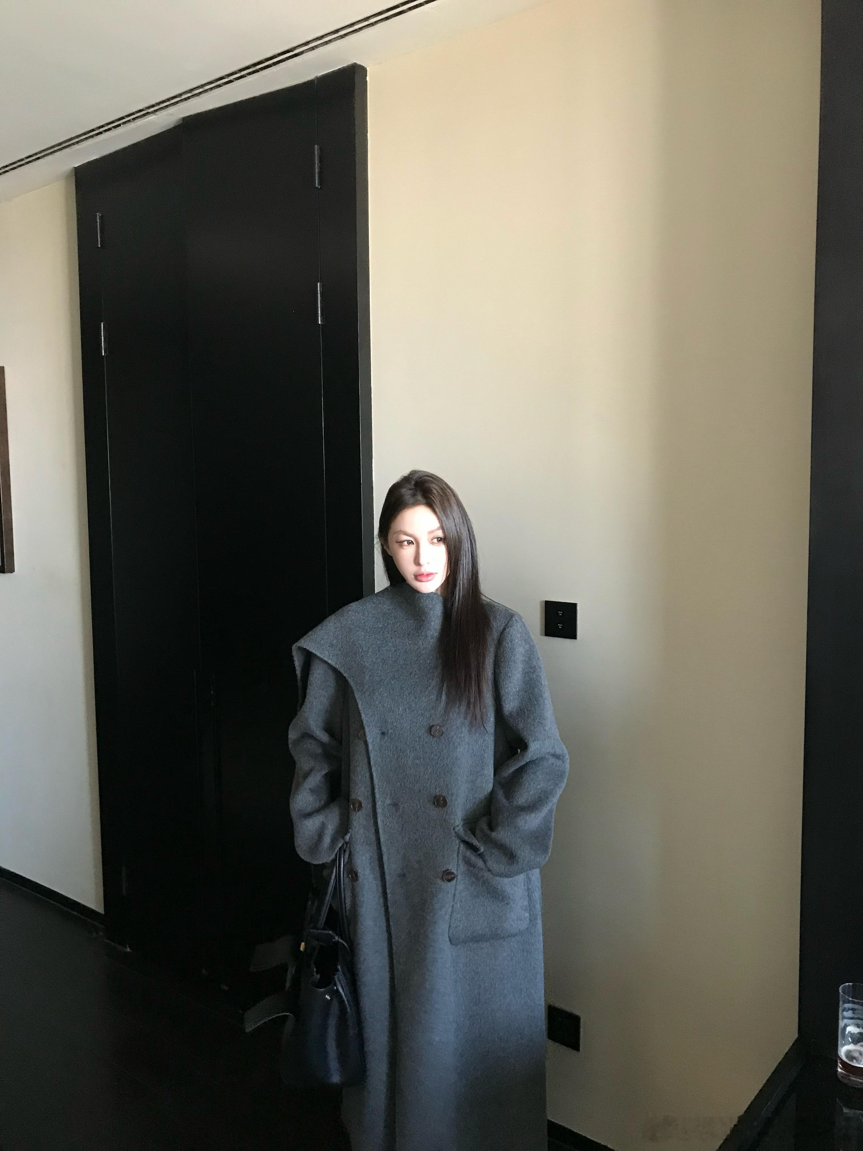 一眼大女主超绝气质的双面呢大衣很重工很特别的一款 自带围巾形成高领 不仅穿法多样