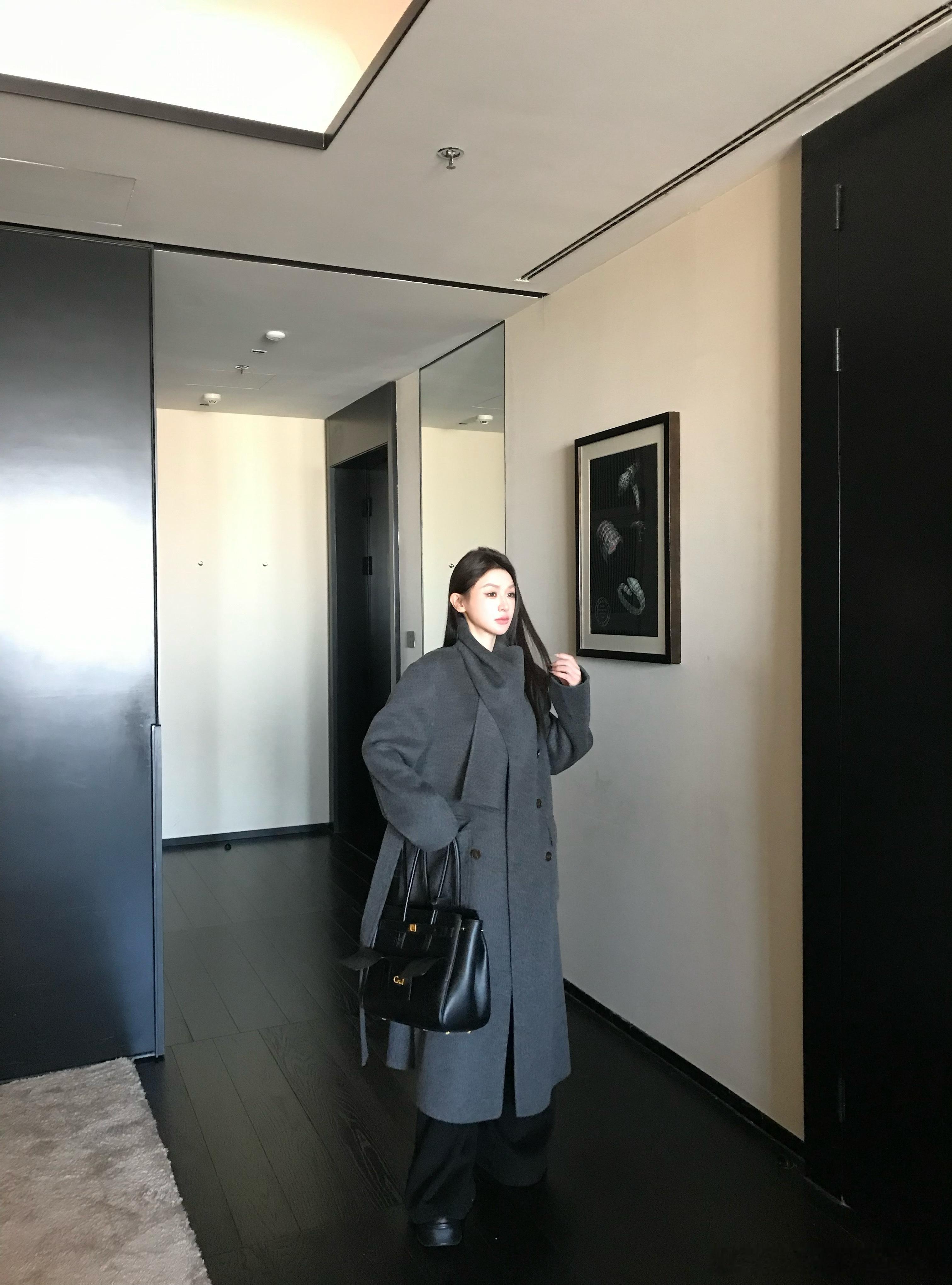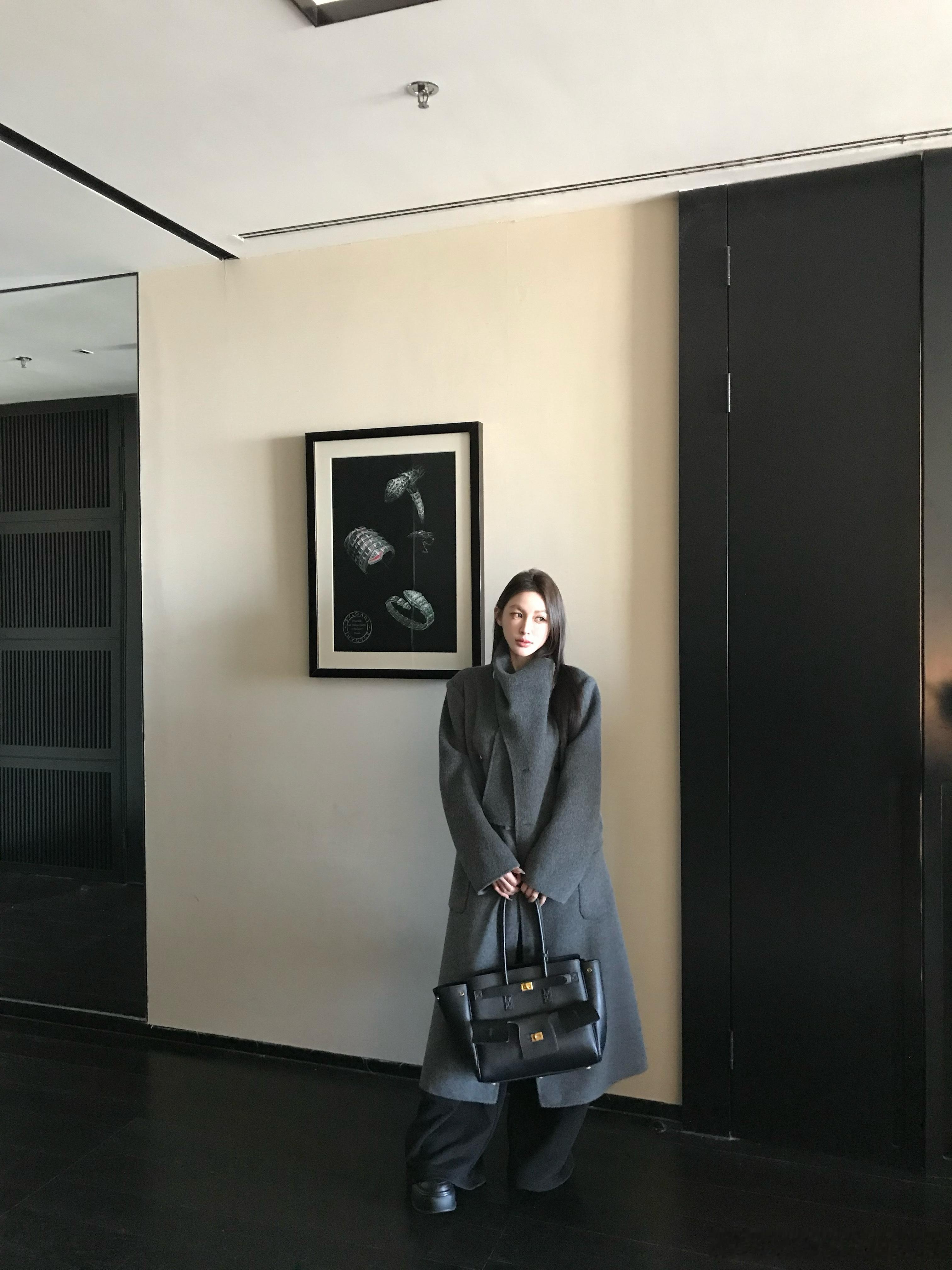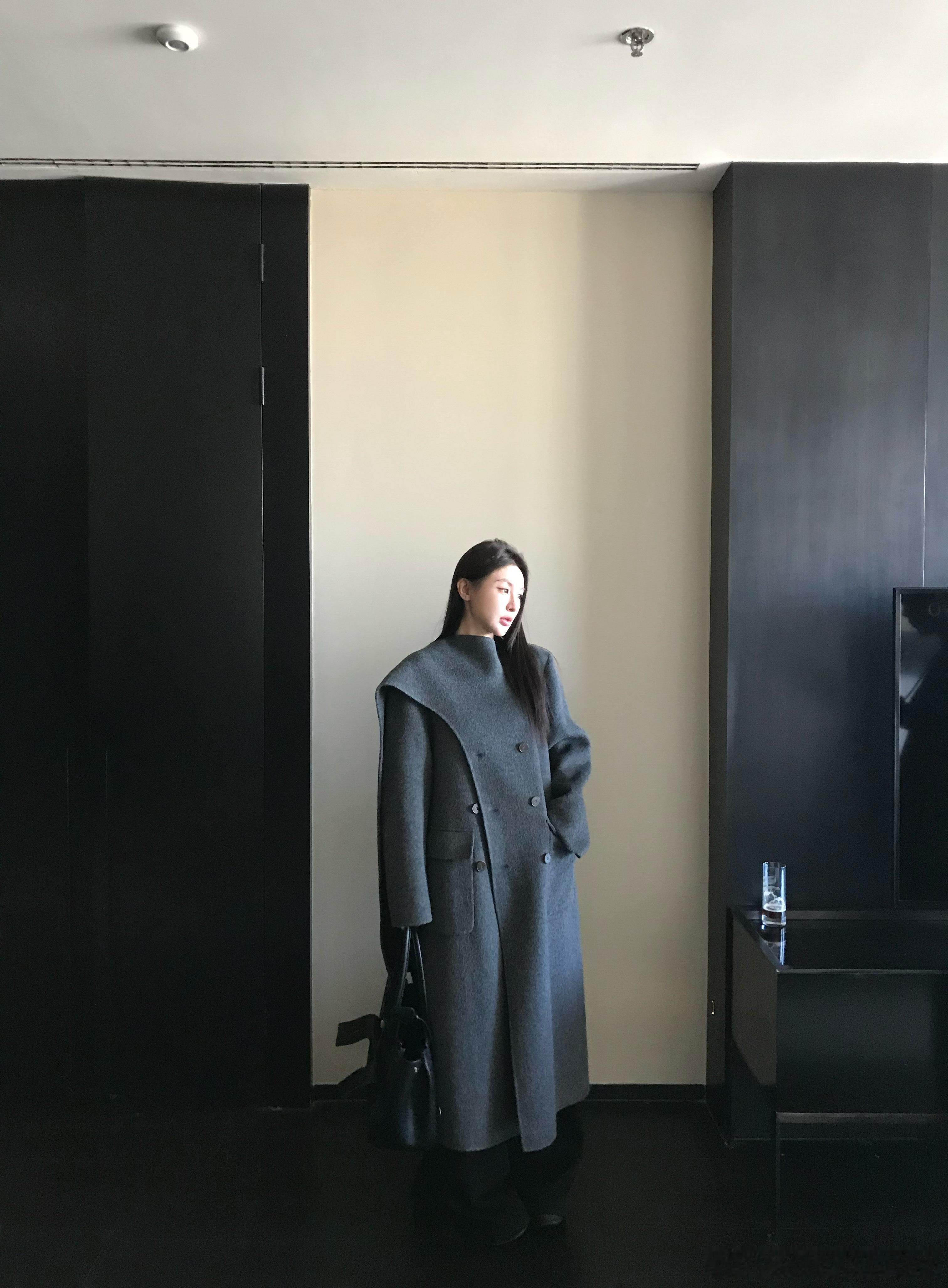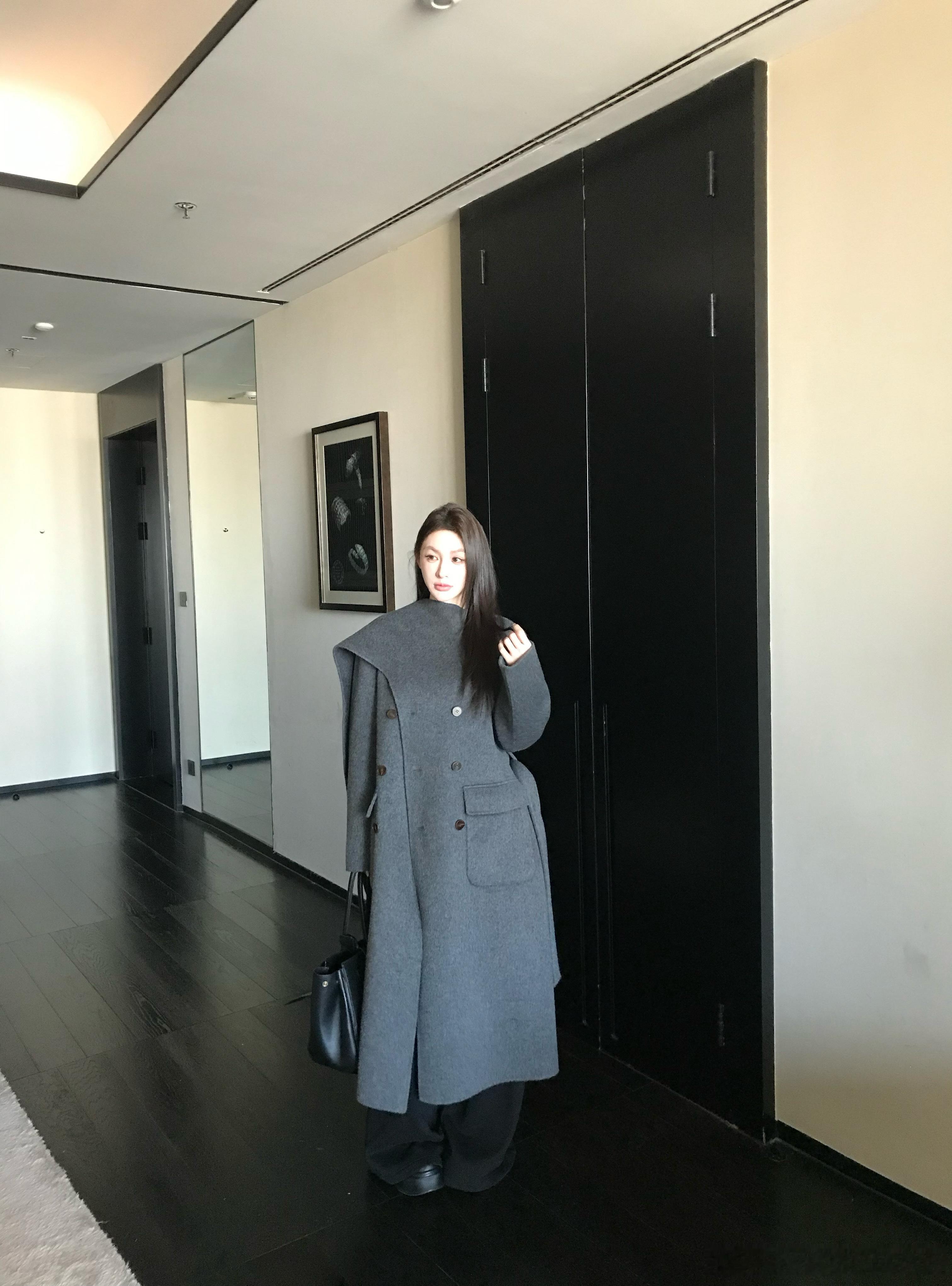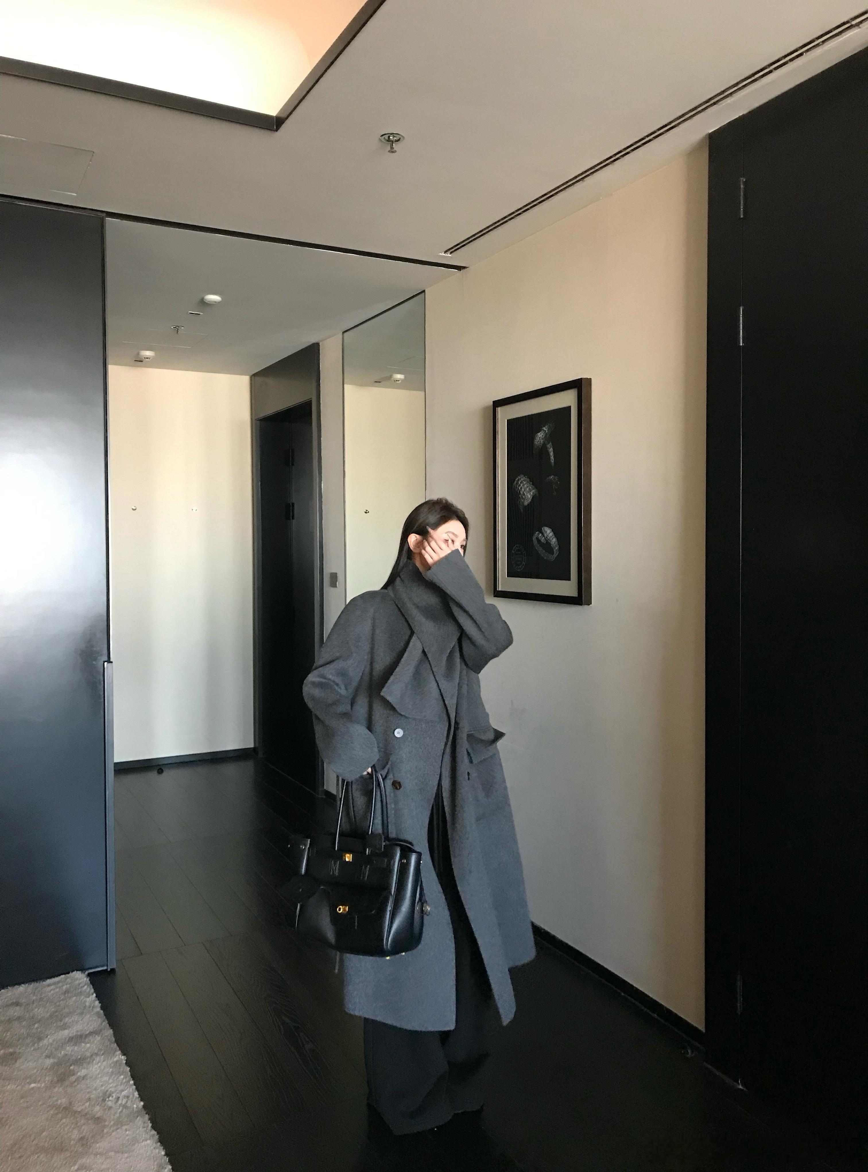 一眼大女主超绝气质的双面呢大衣很重工很特别的一款 自带围巾形成高领 不仅穿法多样
