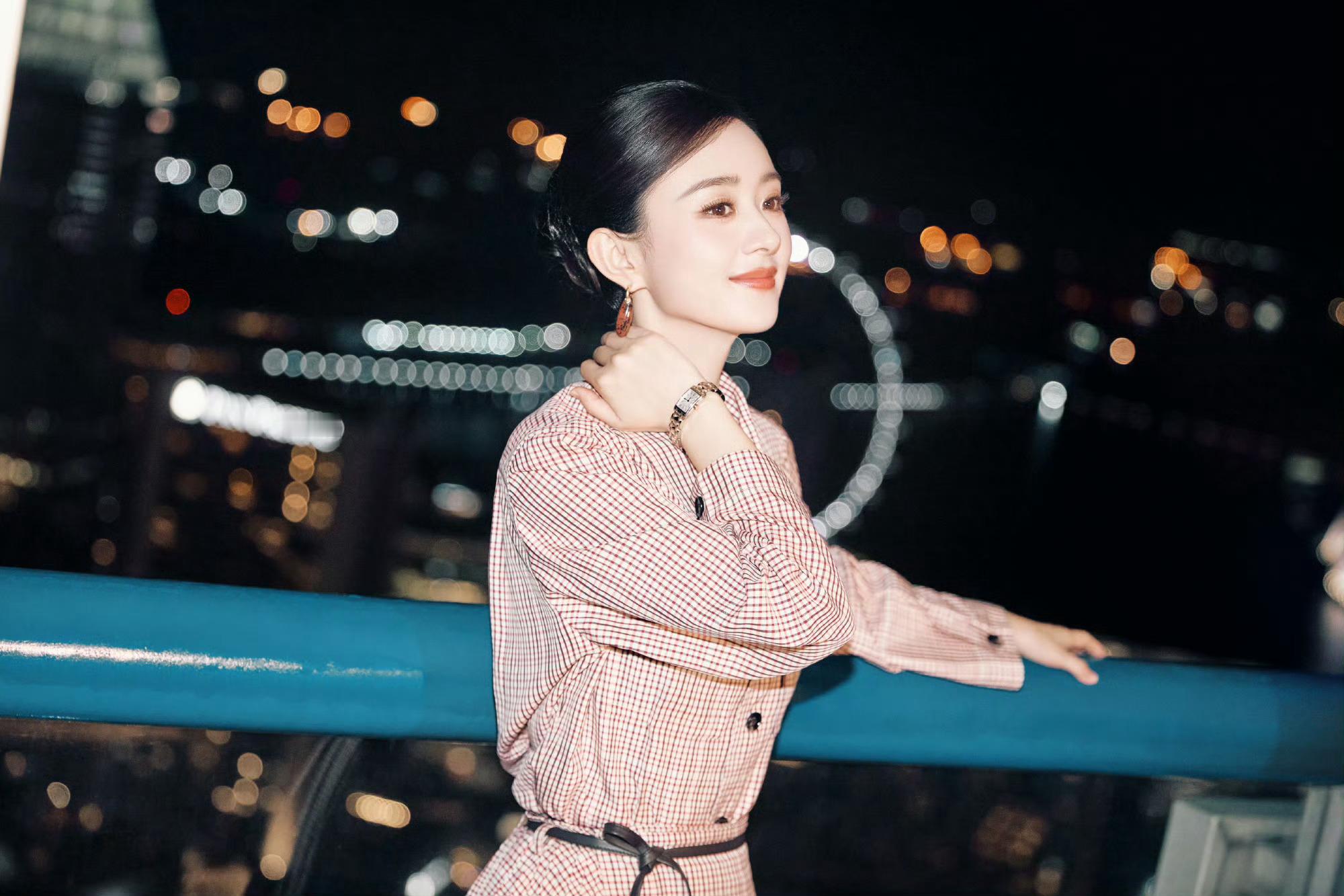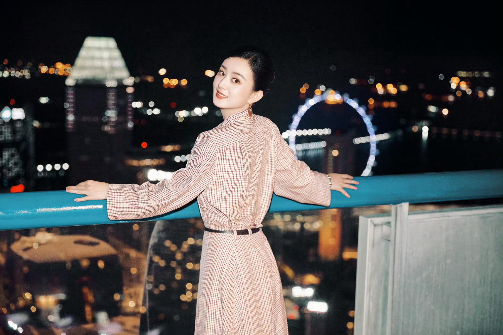 赵丽颖一夜晚星俯瞰半城 赵丽颖赤脚俯瞰半城 赵丽颖新加坡电影节的另一套造型图来了,清新优雅的粉色衬衫裙,俯瞰半城星空,好美啊[哇]