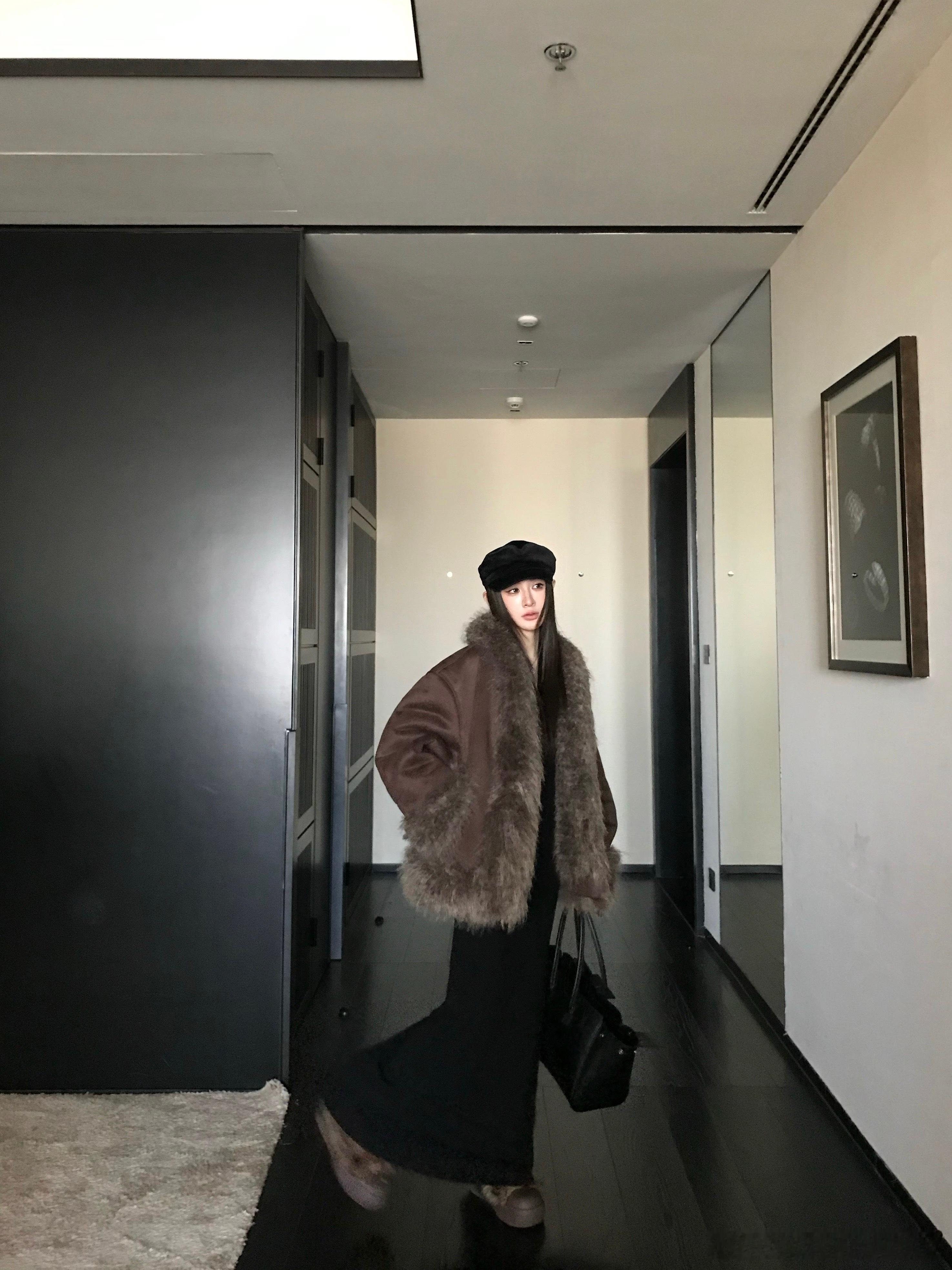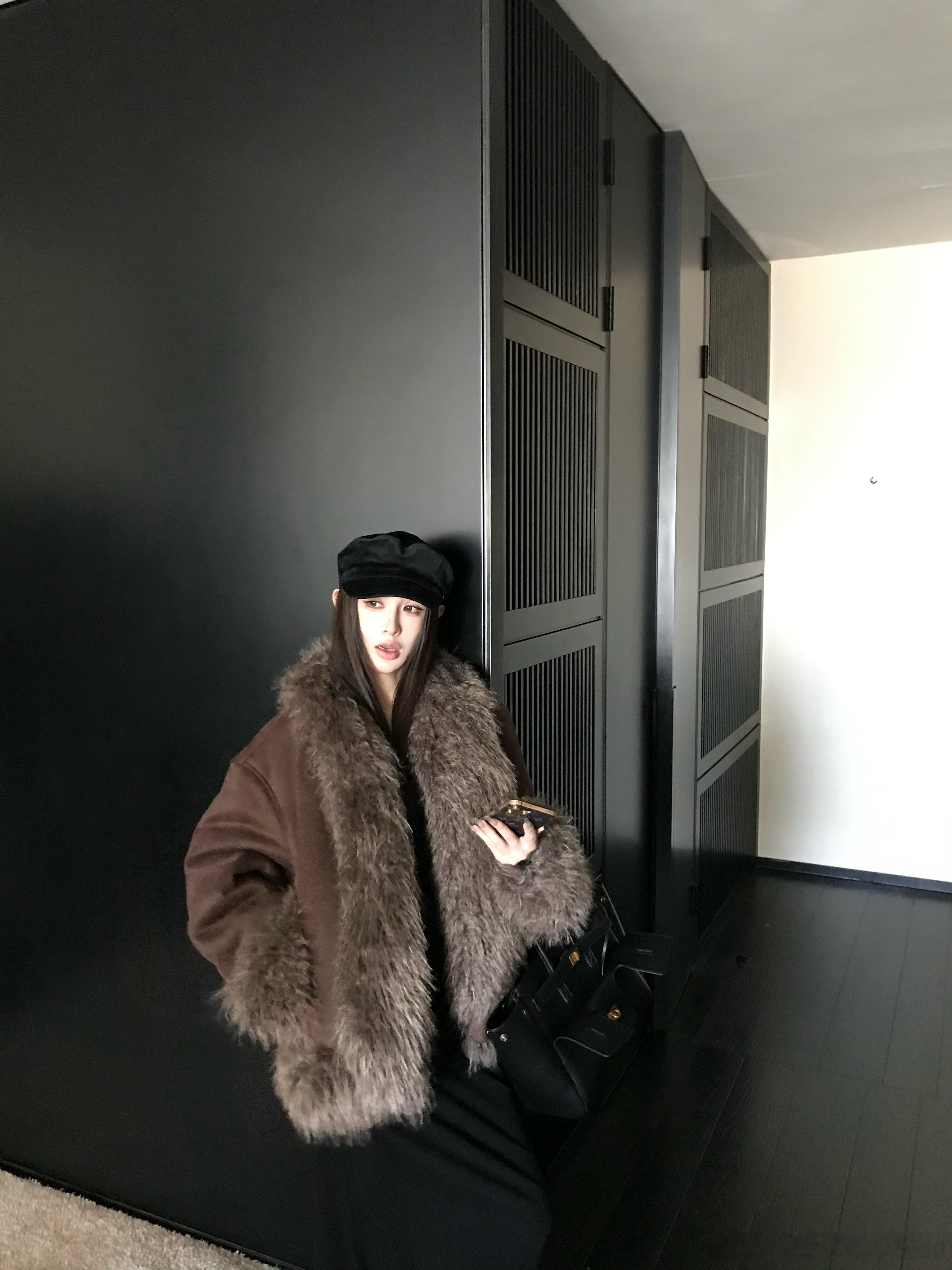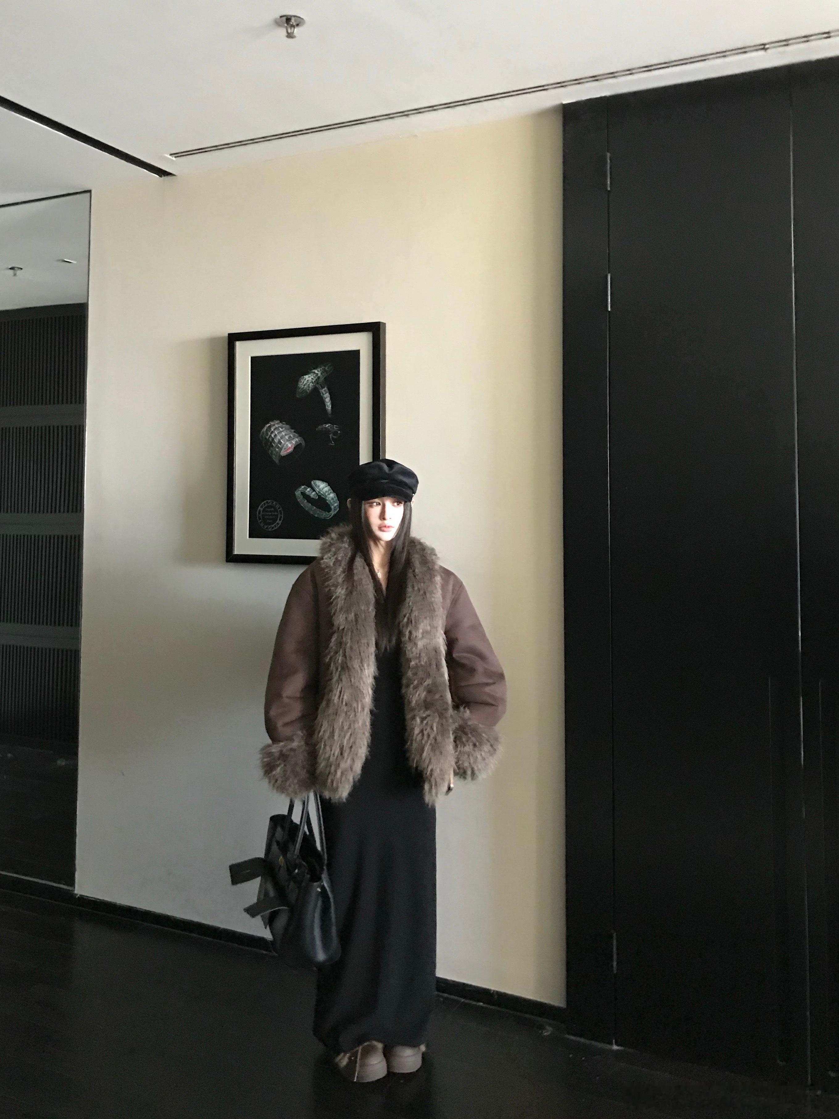 年末镇场炸街款的仿皮草外套宽松廓形+仿卷毛皮草精巧点缀 暖度御寒不挑人 兼具保暖