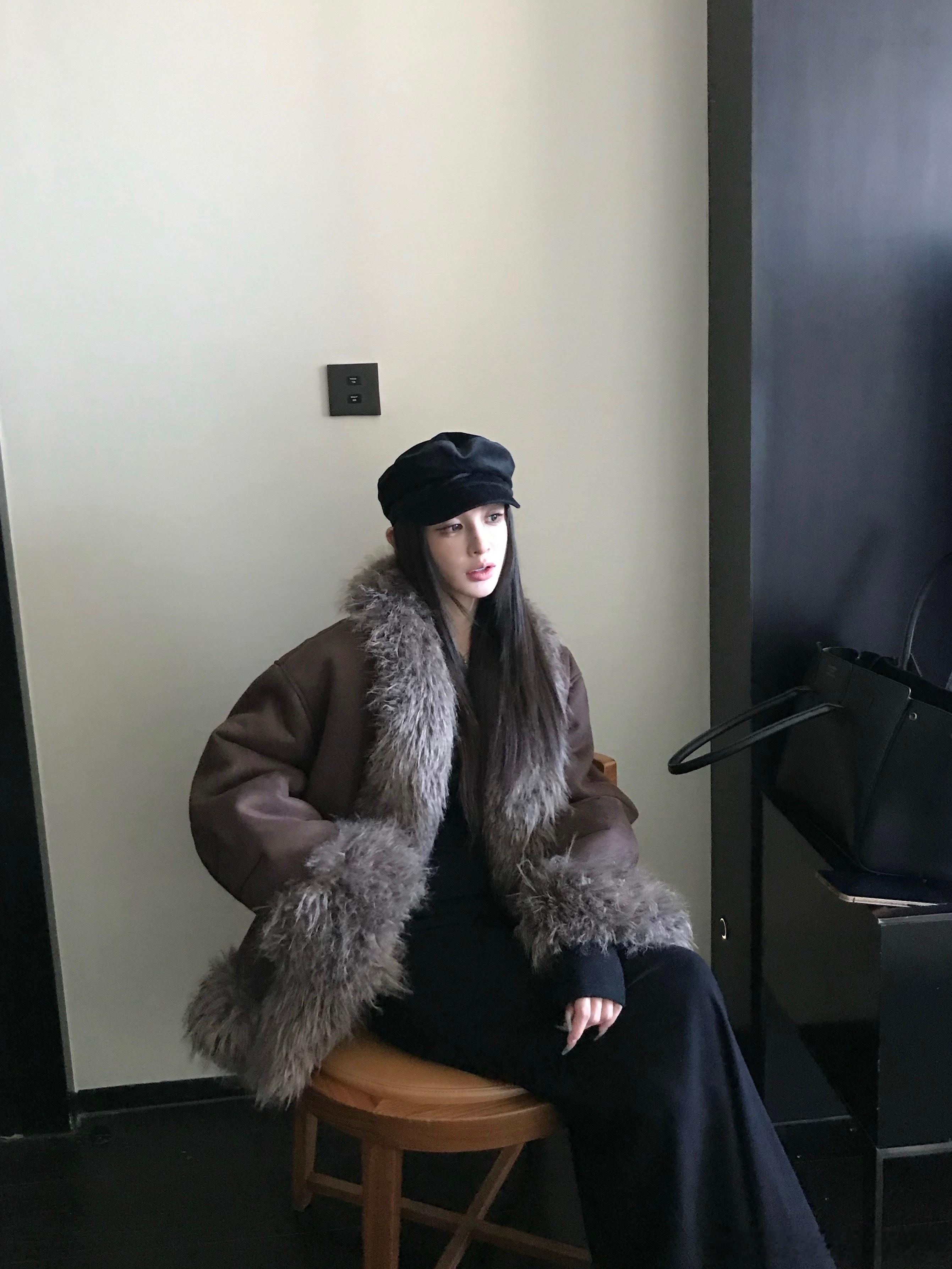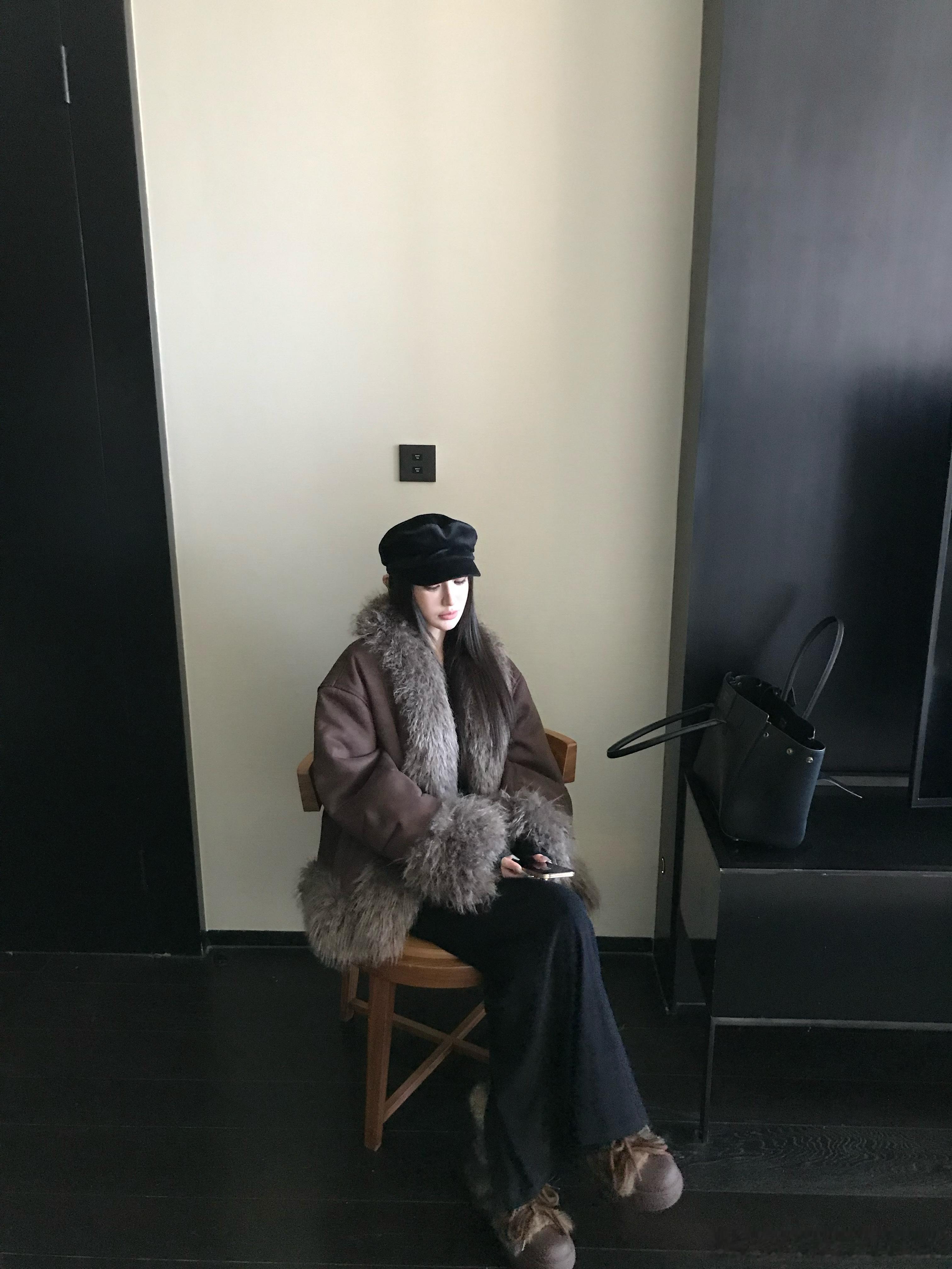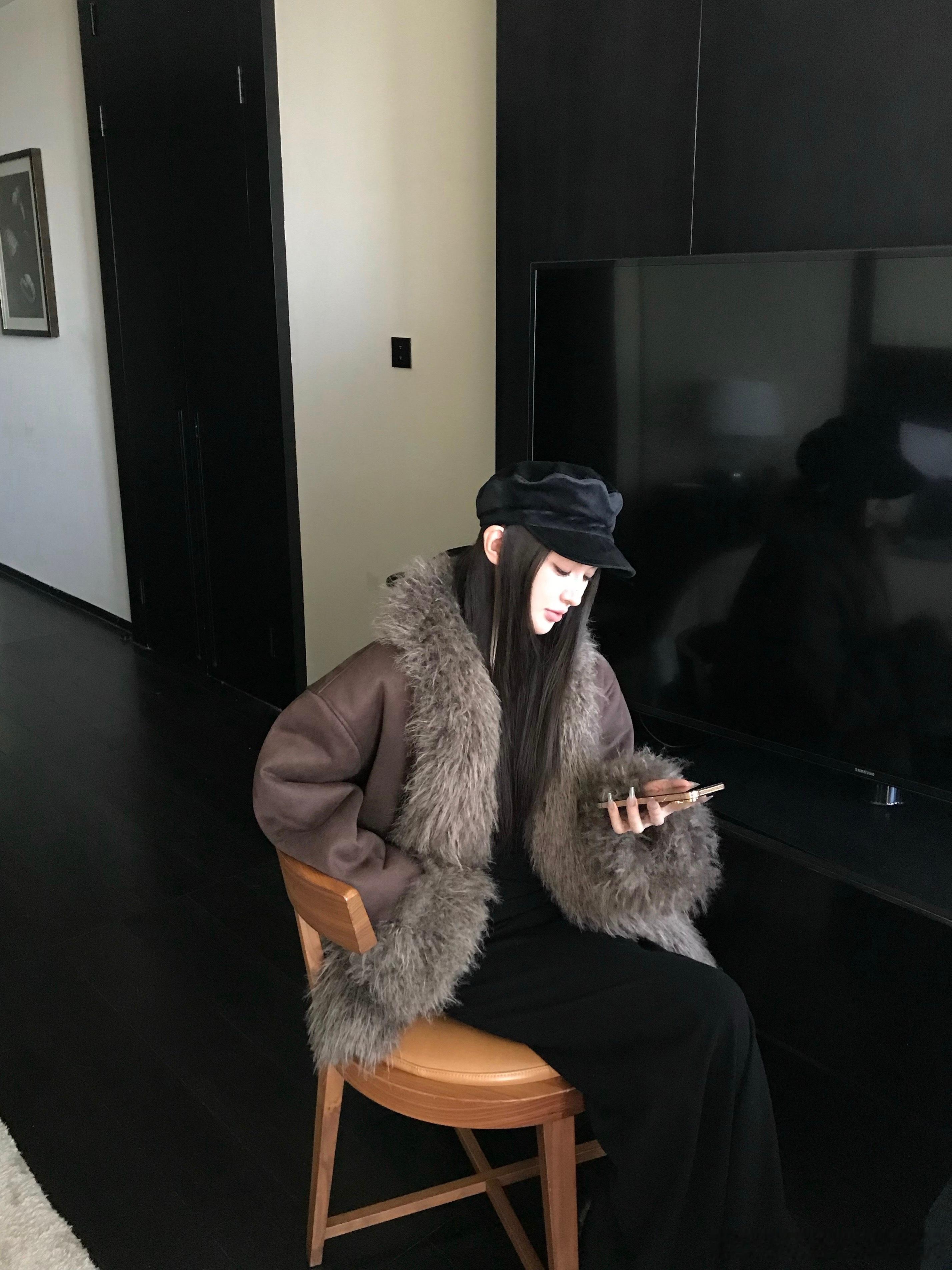 年末镇场炸街款的仿皮草外套宽松廓形+仿卷毛皮草精巧点缀 暖度御寒不挑人 兼具保暖