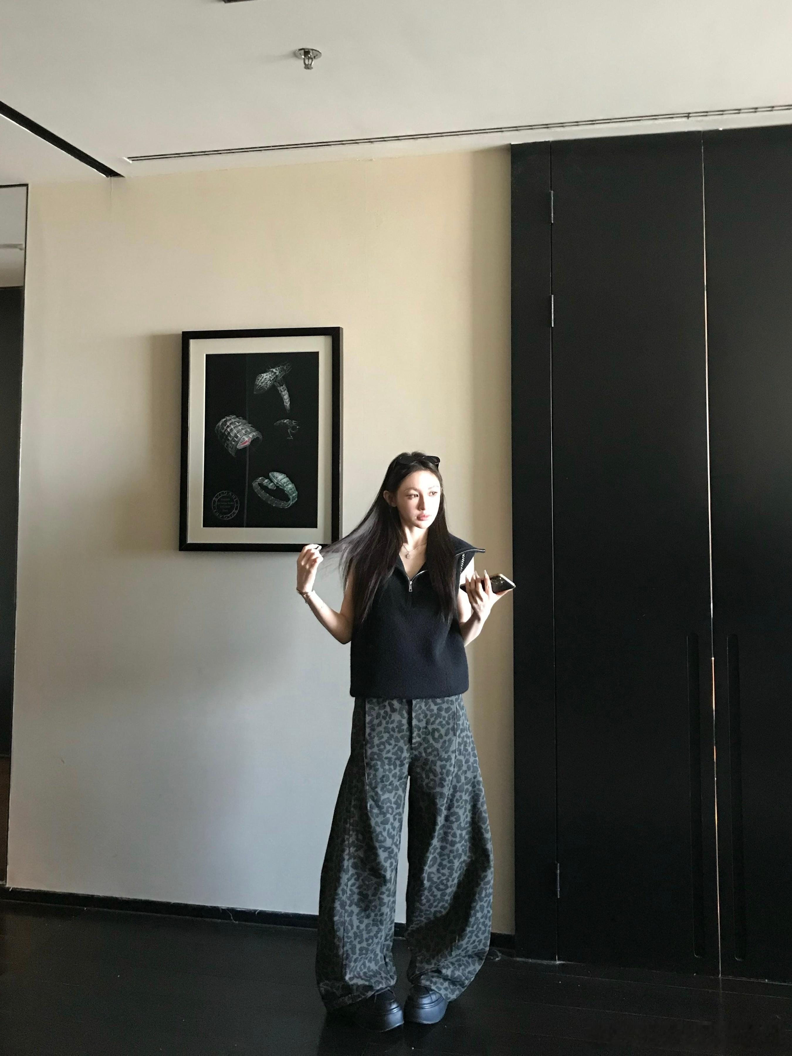 扶墙硬推的豹纹休闲裤🐆冬日的硬核功能裤 不易脏不会皱 最重点的是超级时髦 裤型