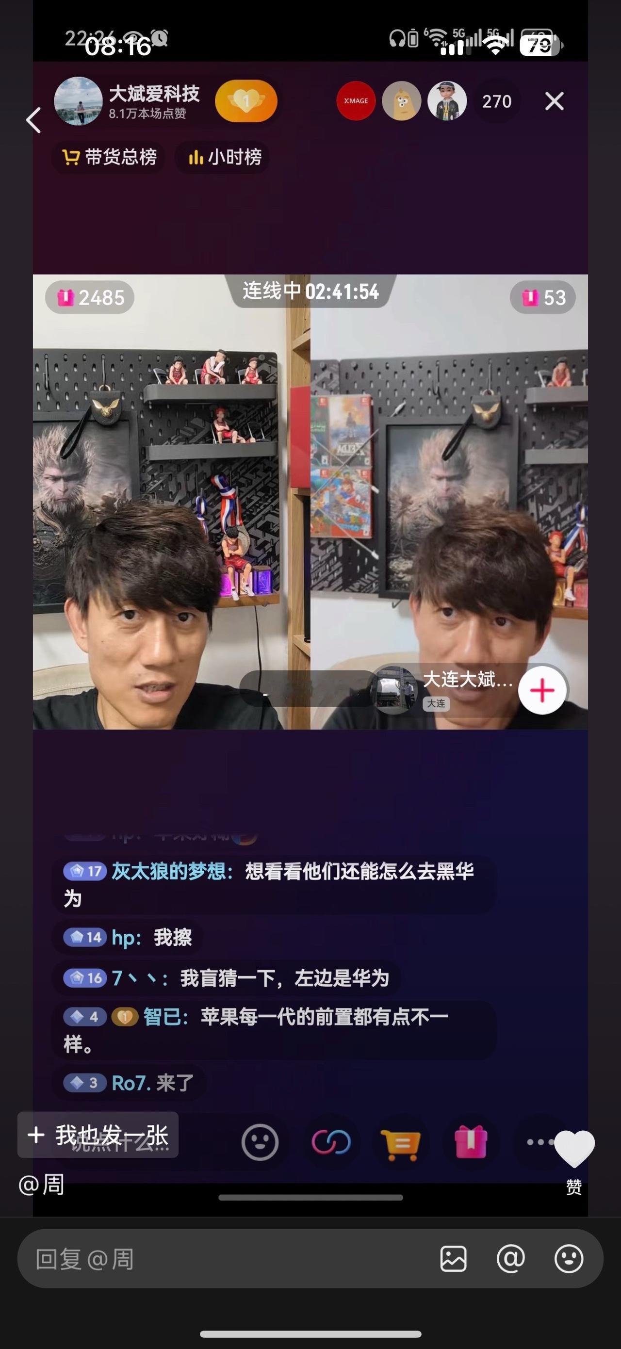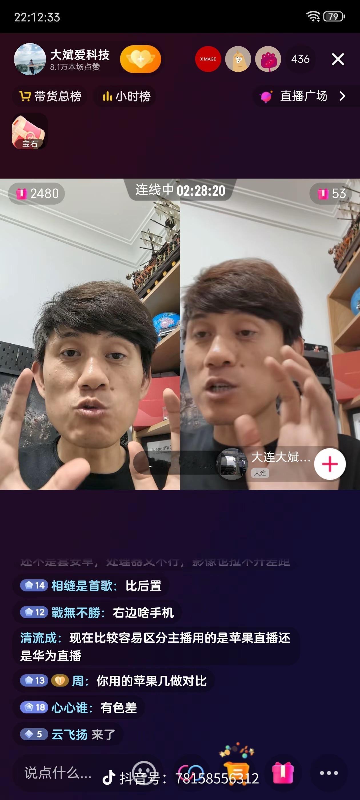 华为直播也要遥遥领先,强到飞起!图片都是无美颜无滤镜!也是粉丝朋友们的截图!华为只要专攻某项技术,直接可以和苹果抗衡!这次直播两个手机PK让我15年的果粉也万万没想到!其他国内友商们,加油吧!华为牛逼……遥遥领先!华为 苹果 手机直播 手机
