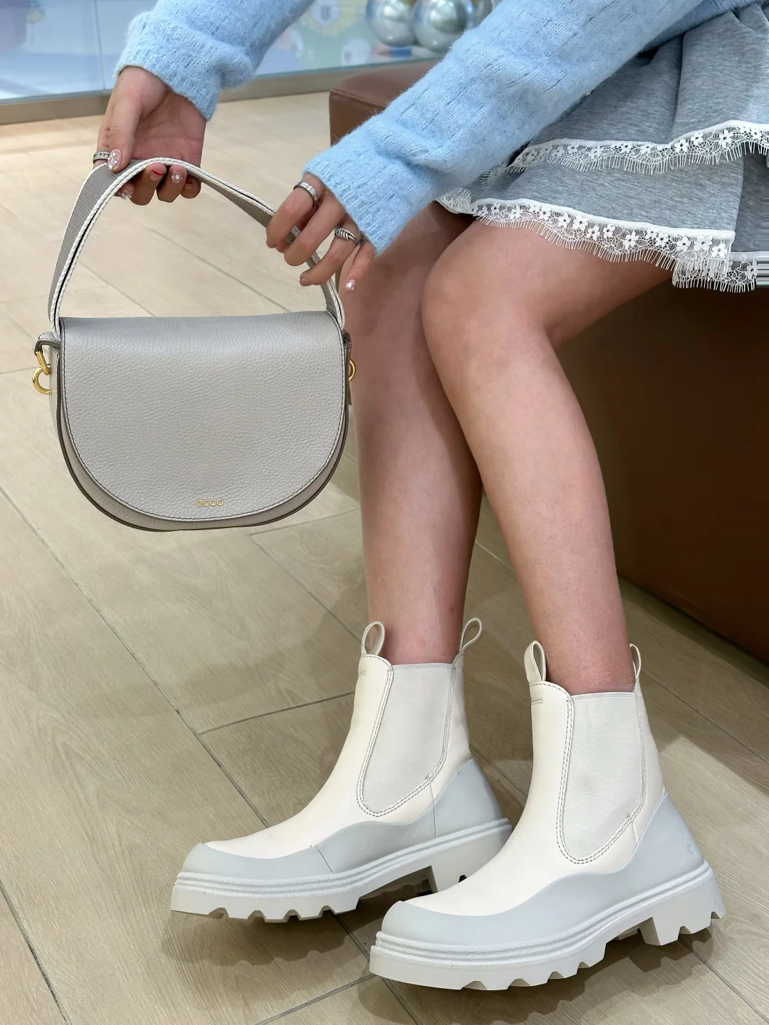 我上身的ecco超棒,短靴特别好搭配冬装,皮质柔软舒适又保暖。