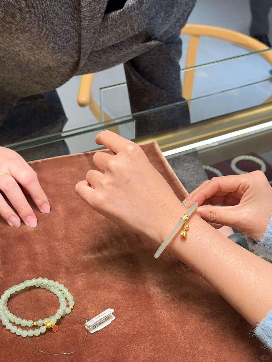 周大福的和田玉镯和吊坠真的好贵气,成色特别好很显肤色,送礼和自用都很合适,大品牌很有保证!