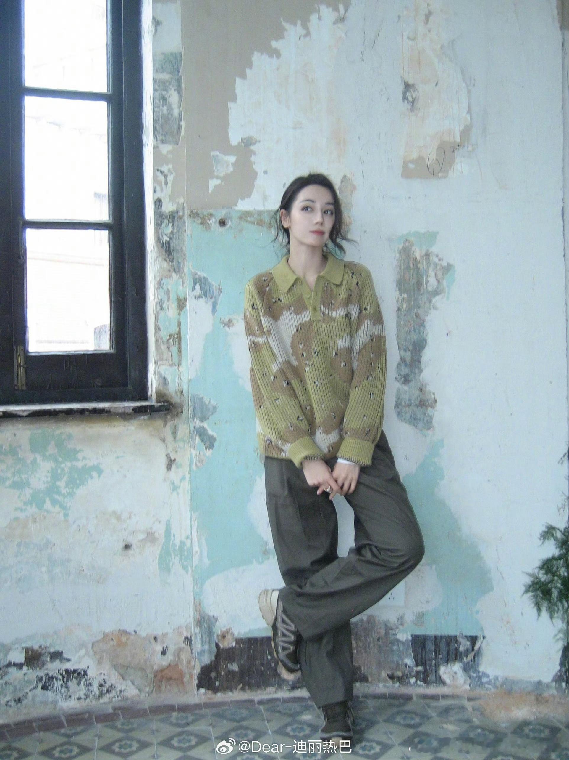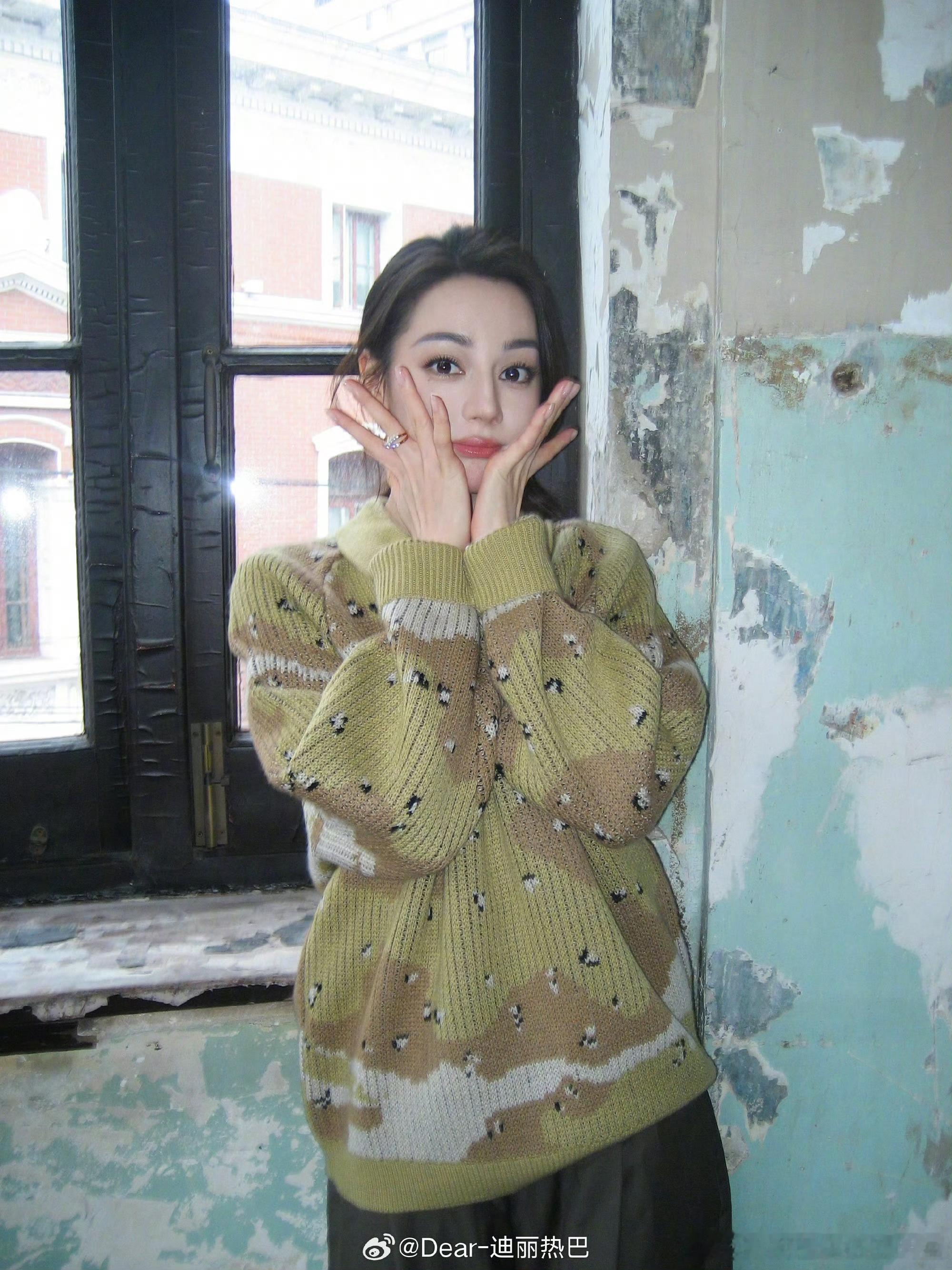 迪丽热巴俏皮毛衣look 美女又放饭咯,这次是毛衣热巴