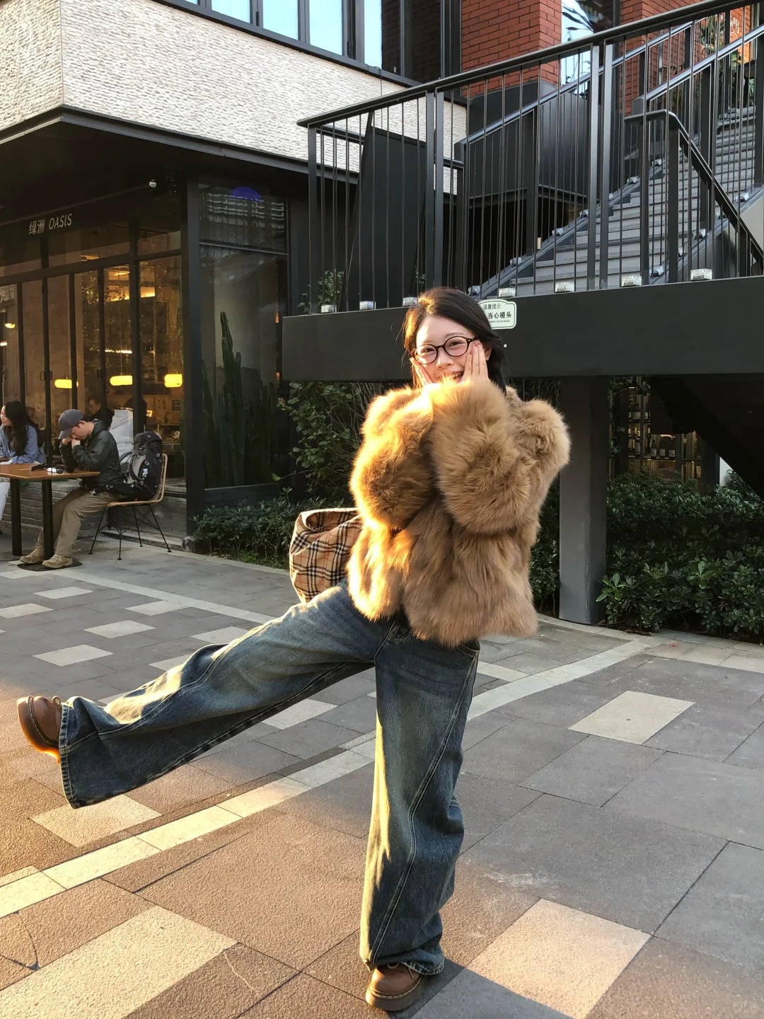 宝宝你超级适合穿皮草啊!这个外套配上阳光超级好看超级无敌好看!!太会了!!