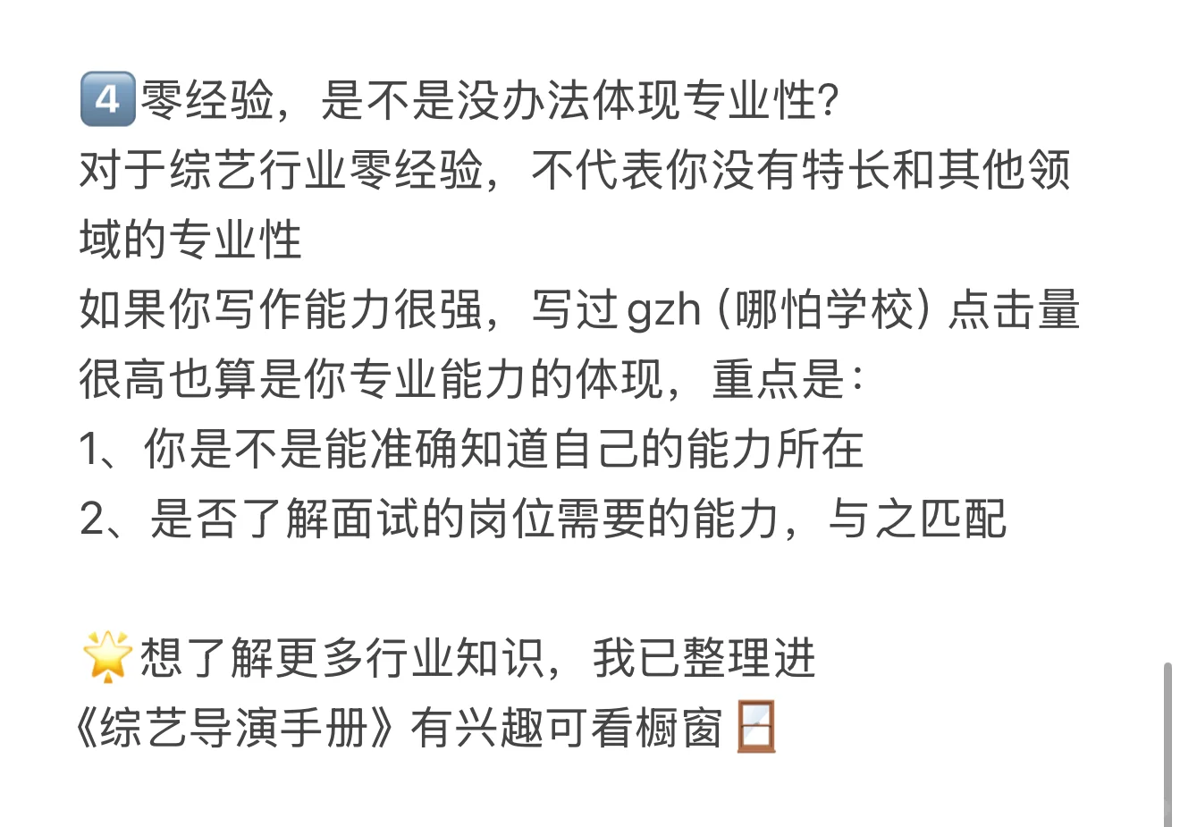 对于综艺行业零经验,不代表你没有特长和其他领域的专业性
