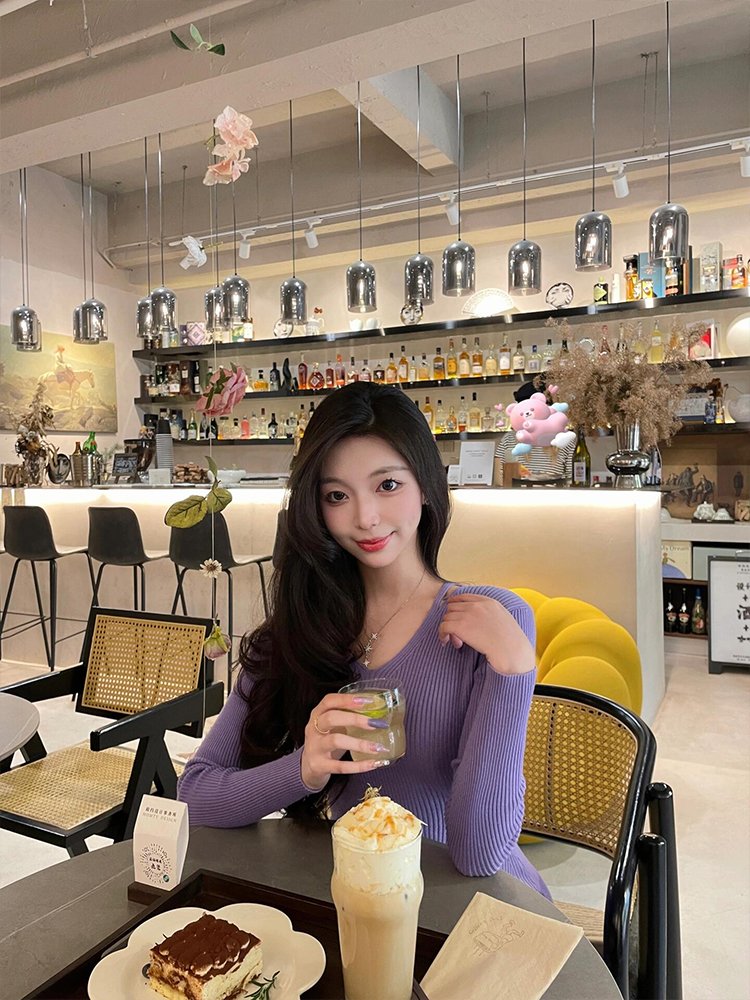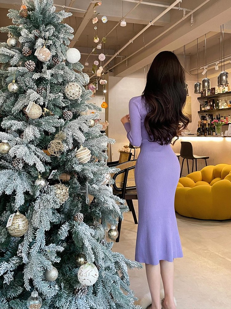 富家千金感穿搭毛衣裙大衣内搭2025年新款气质打底紫色针织连衣裙