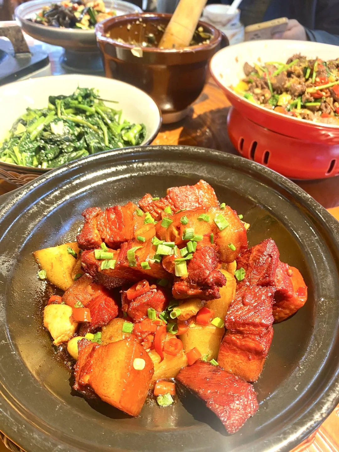 🌈这家湘菜是我吃了一次就爱上的湘菜馆!环境优雅,每个地方都有古典的艺术风格,接待朋友也特有脸! 🥓野山椒牛肉 这个菜是每桌必点,牛肉用的是小黄牛,所以牛油味浓,炒🉐很入味,搭配香芹的香味,越吃越想吃😋 🐟剁椒鱼头 选用的水库大头鱼头,所以头都好大个,鱼头用剁椒铺满满一层,鱼肉鲜嫩,又是微微辣,很适🈴我们不是很能吃辣的广东人。 ✨毛氏红烧肉 他们家秘制的红烧肉,入口香糯软糯,一点都不会觉得油腻,肉分层漂亮。 ✌🏻快约上你的小伙伴们去试试吧!
