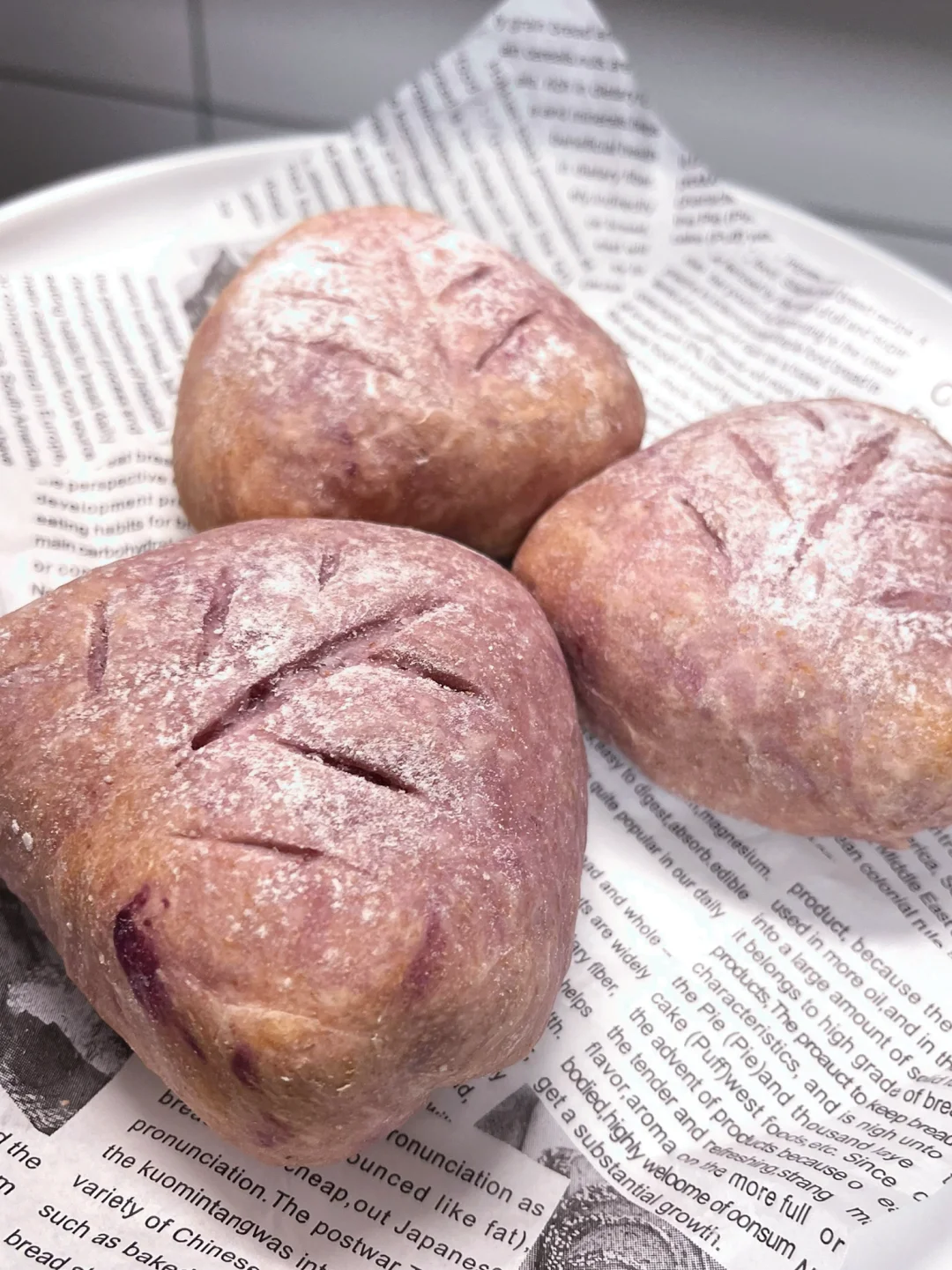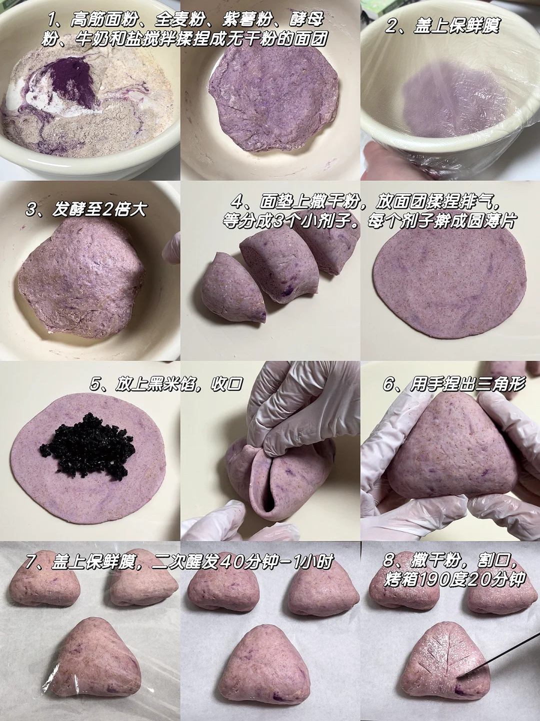 [向右R]面皮食材:高筋面粉100g、全麦粉30g、牛奶95g、酵母粉2g、紫薯粉2锅、盐1g、