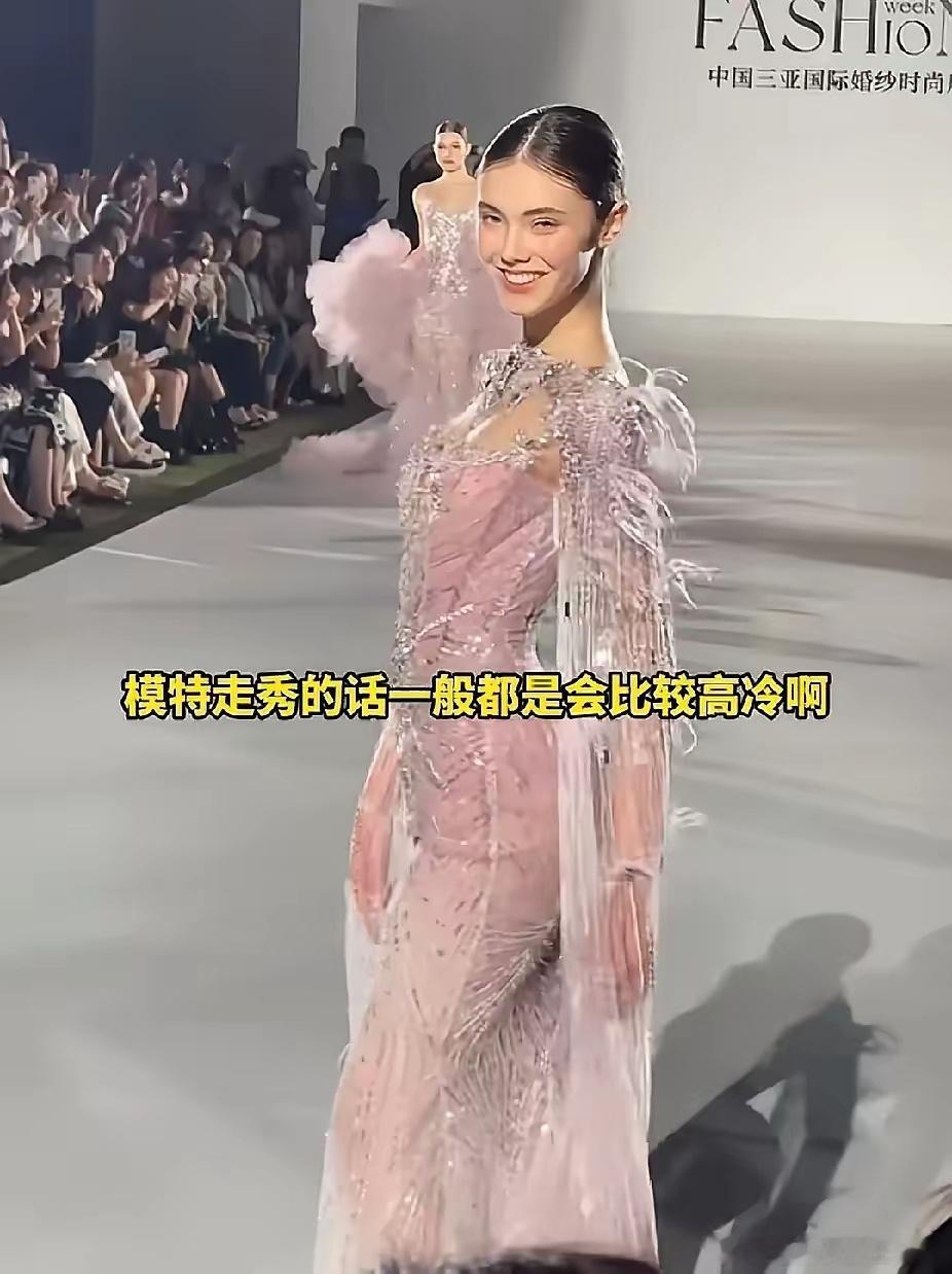 18岁模特走秀时忍不住笑场!三亚国际婚纱时装周现在,一位来自俄罗斯的18岁美女模特,在一声声 “哇!哇!哇!”中迷失,本来高冷上场,结果观众席里赞美的声音让她忍不住笑了起来,与大家互动。有一说一笑起来以后像在发光!网友的评论才有趣:我要有这身材,寿衣我都要穿包臀的!其他网友调侃到,那你说了不算[捂脸]希望这位美女模特不会因为笑场被处罚!