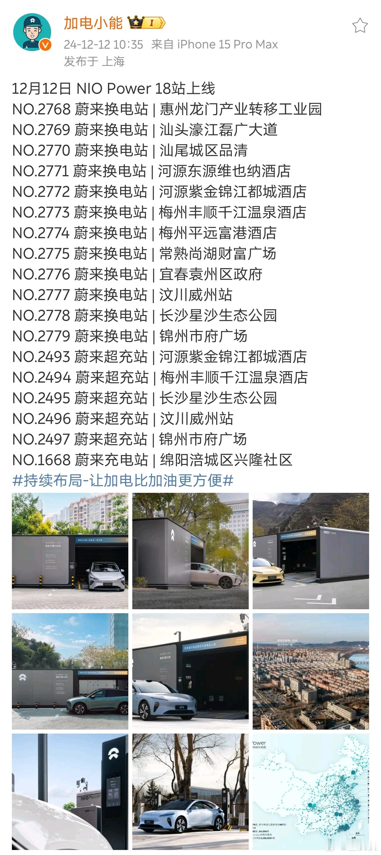蔚来今天又建立起18个充换电站,武汉那个换电站工厂稳定之后,建设明显稳了很多。