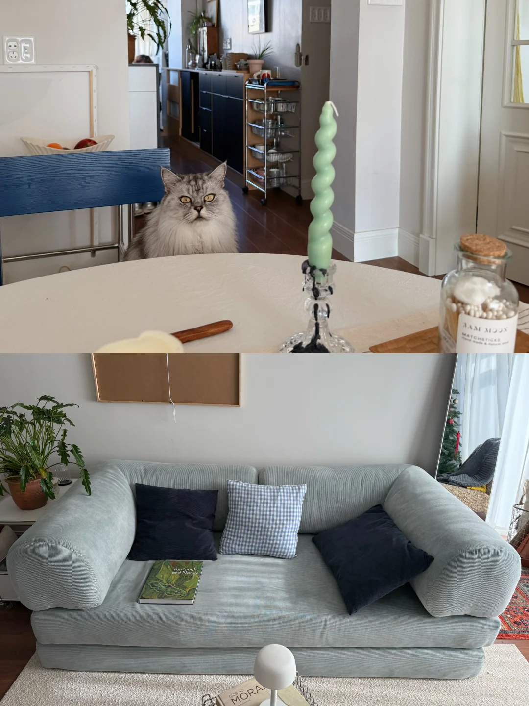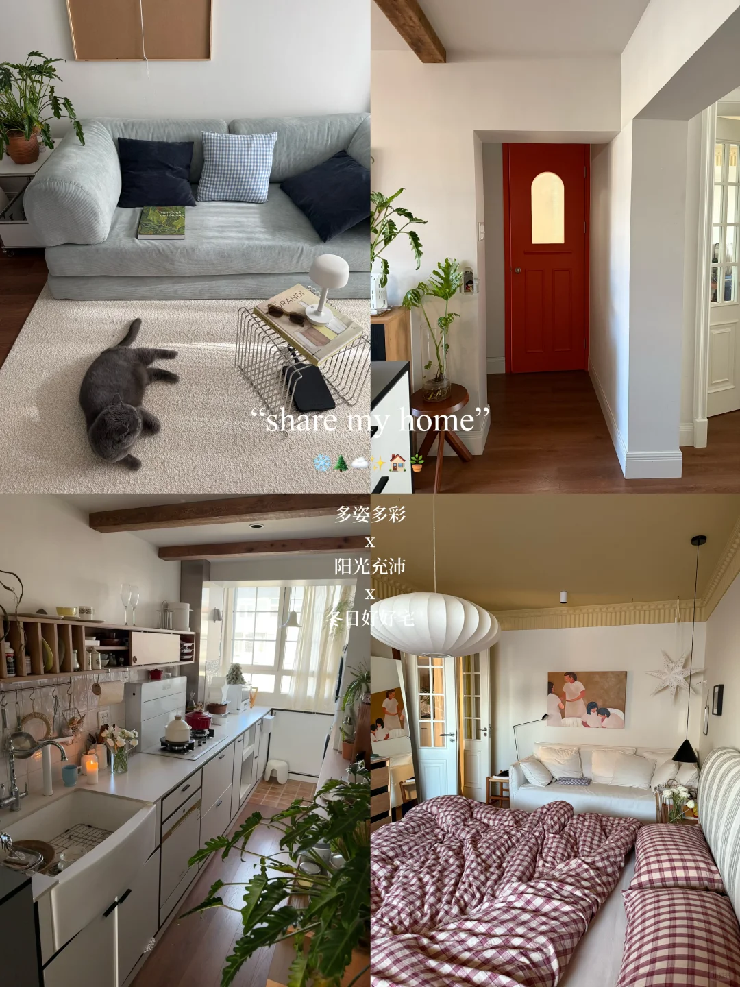 还有半个月2024年就过去了 这个家住了也小两年 满满当当都是生活的痕迹 每周买束鲜花🌷 趁着零下前又入了几盆绿植🪴 配合着圣诞氛围四件套换成了红格子 阳光撒在客厅 🛋️依旧爱着我蓝色的沙发 中午晒晒背 暖洋洋的 看着胖胖在爆米花地毯上舒服的磨蹭 整个家慵懒且精力充沛着 -