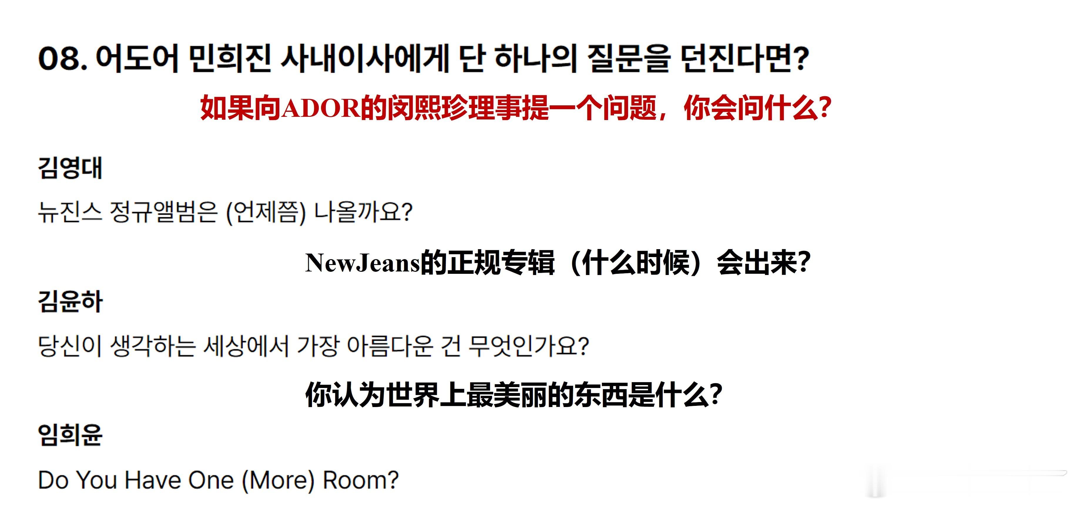 总共10个问题,两个用在了给方时赫和闵熙珍提问上边