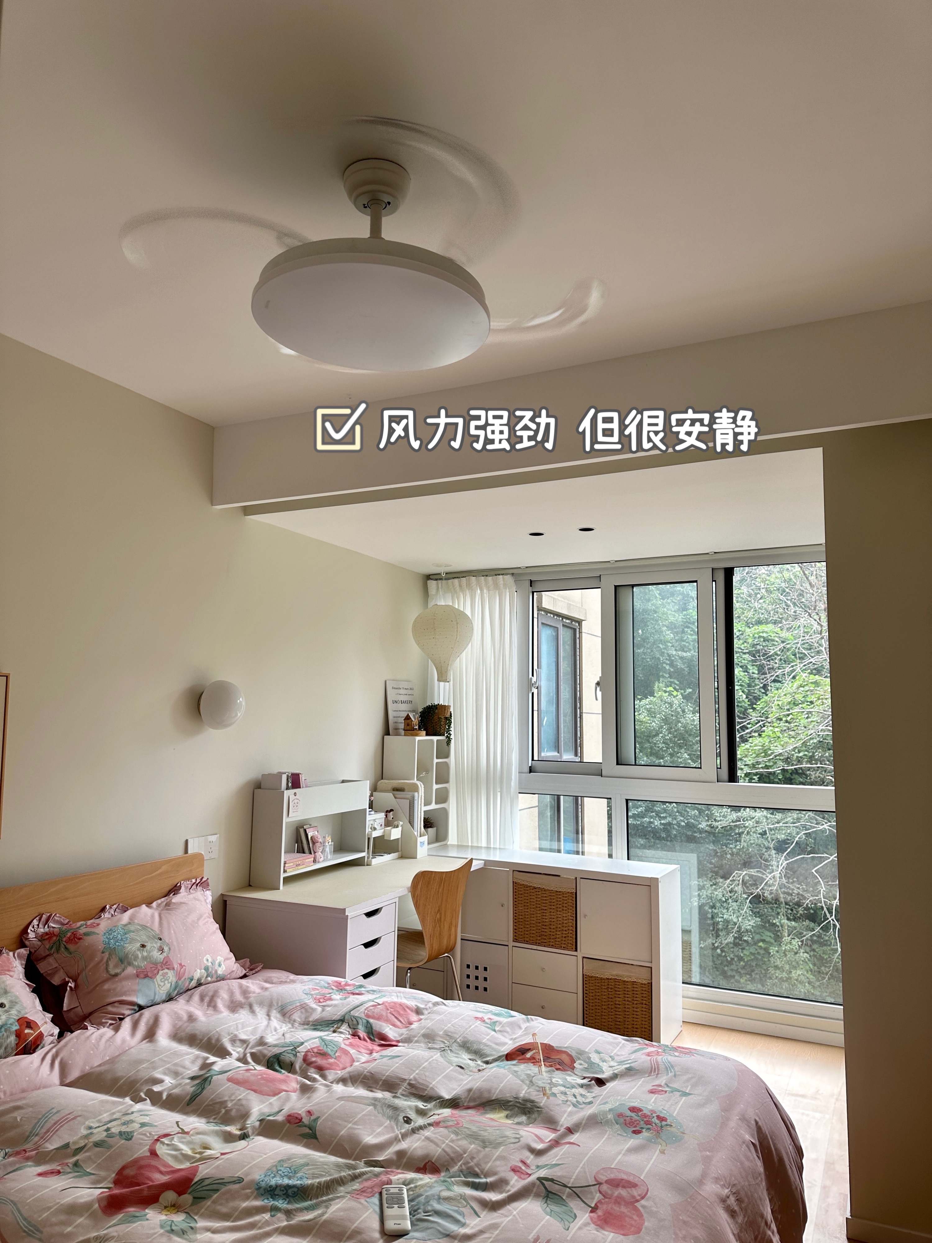 ✨它是隐藏式的风扇叶片,不会占空间,小房间也很适合,打开叶片后有48寸,边边角角都能吹到凉风🌬~重点是,它还是全铜直流变频电机性能特别好,灯杆加粗, 送风特别稳定一点不会晃动,运转的时候也没有噪音,就算午睡小憩也不会受到干扰~