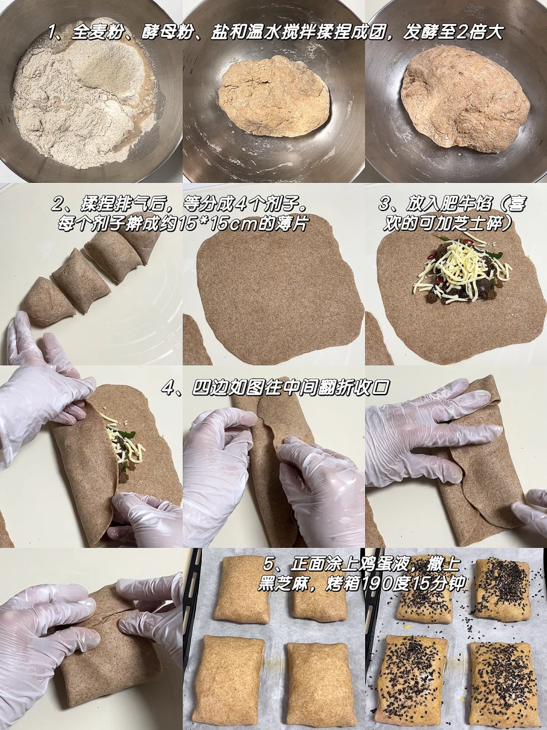 [向右R]面皮食材:全麦粉200g、盐3g、酵母粉2g,温水120g
