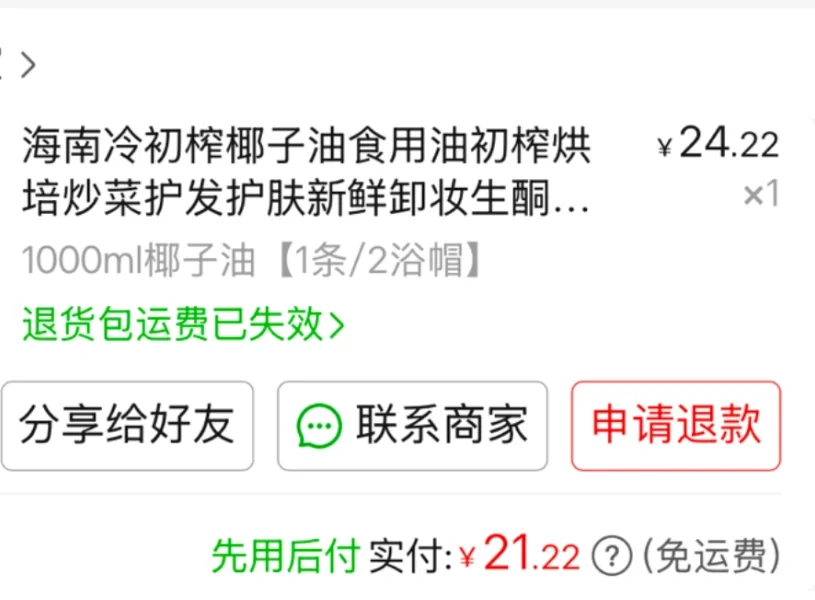 现在二十元二斤的椰子油也快用完了,用时一年半。我买这个容易变味,打算换,芝麻油更好,天然健康,但味道不太喜欢。