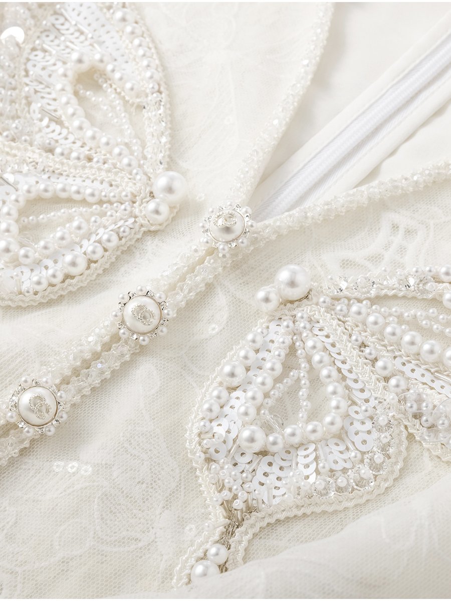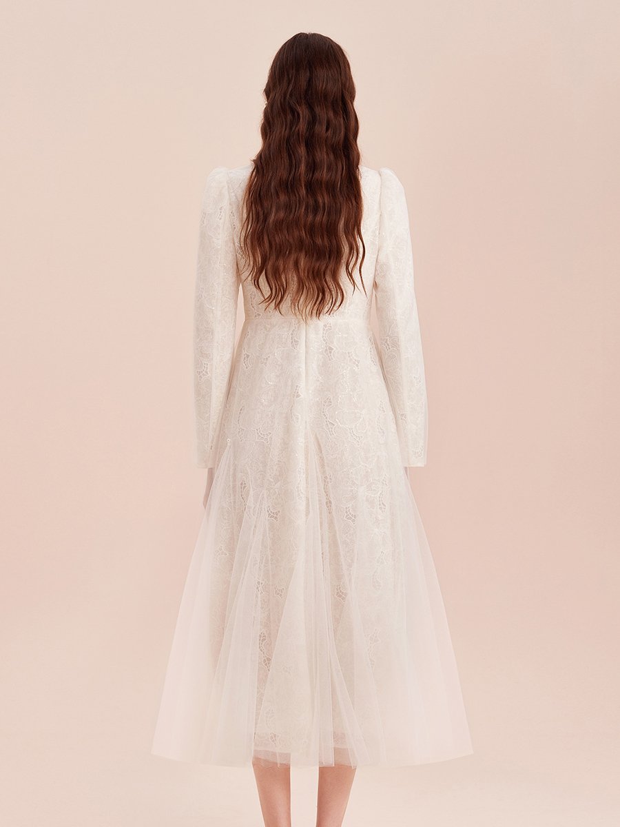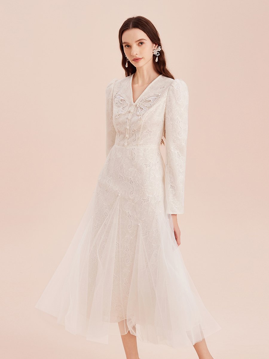 V领设计修饰脸型展现颈部线条 网纱裙摆设计浪漫仙气满满