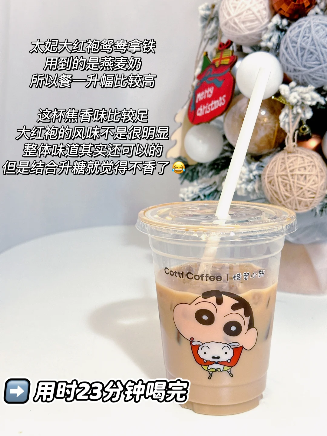 太妃大红袍鸳鸯拿铁用到的是燕麦奶,所以餐一升幅比较高〰️这杯焦香味比较足,大红袍的风味不是很明显,整体味道其实还可以的,但是结合升糖就觉得不香了😂