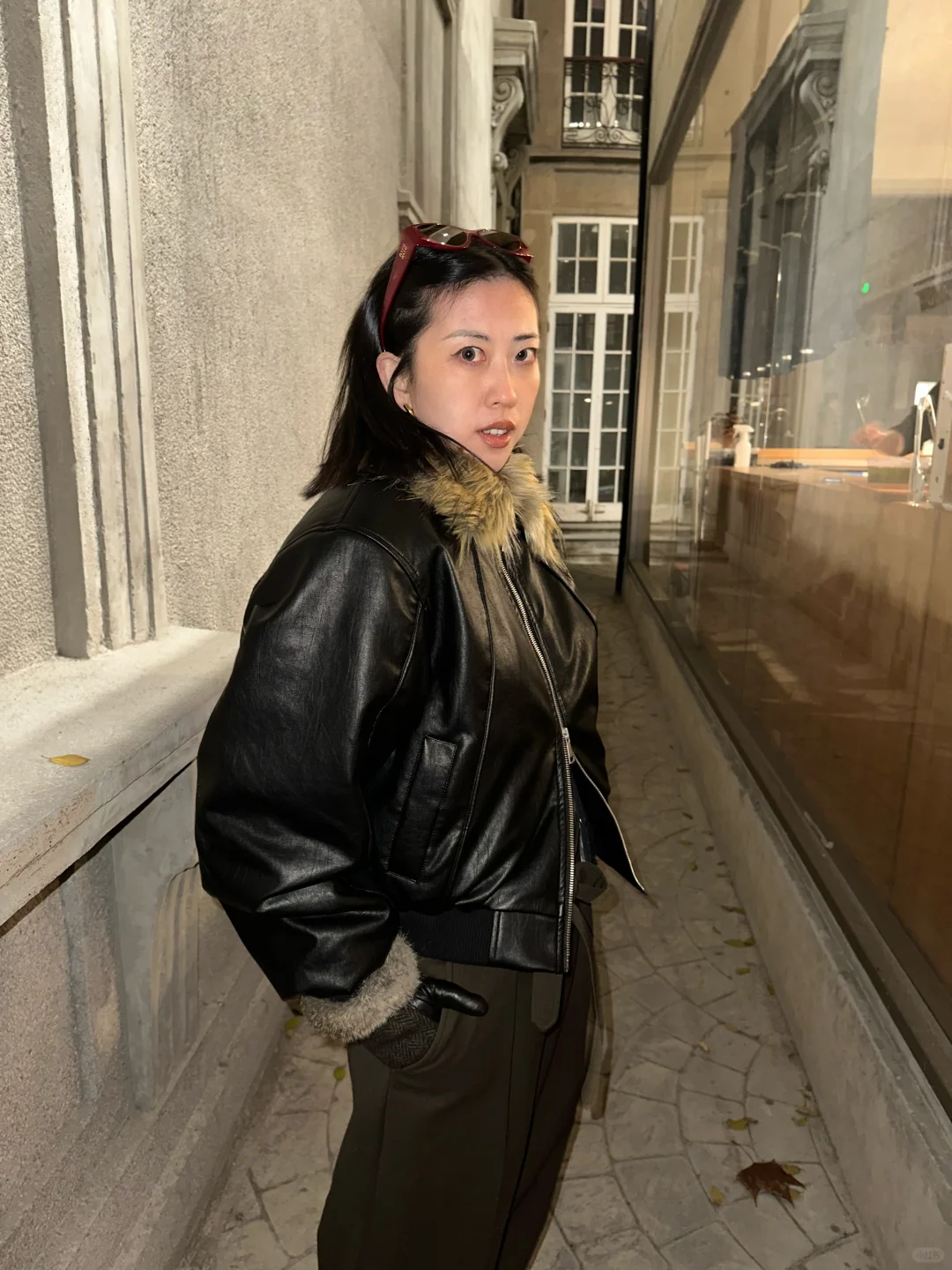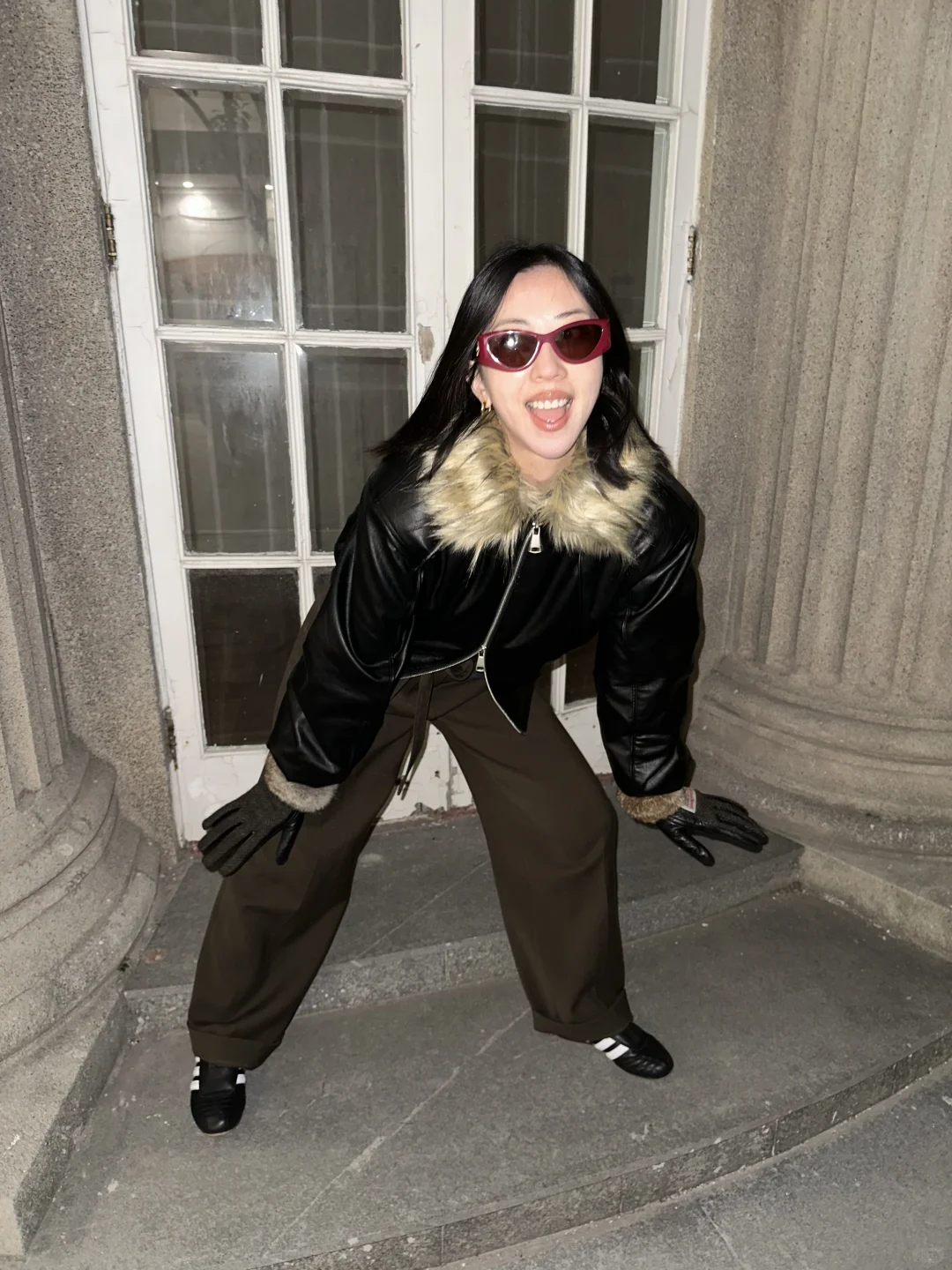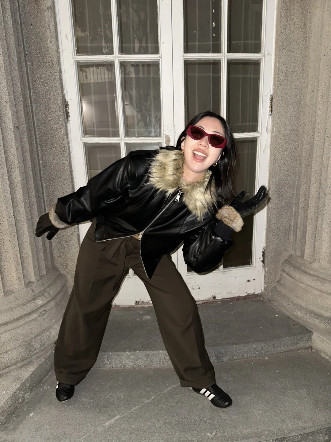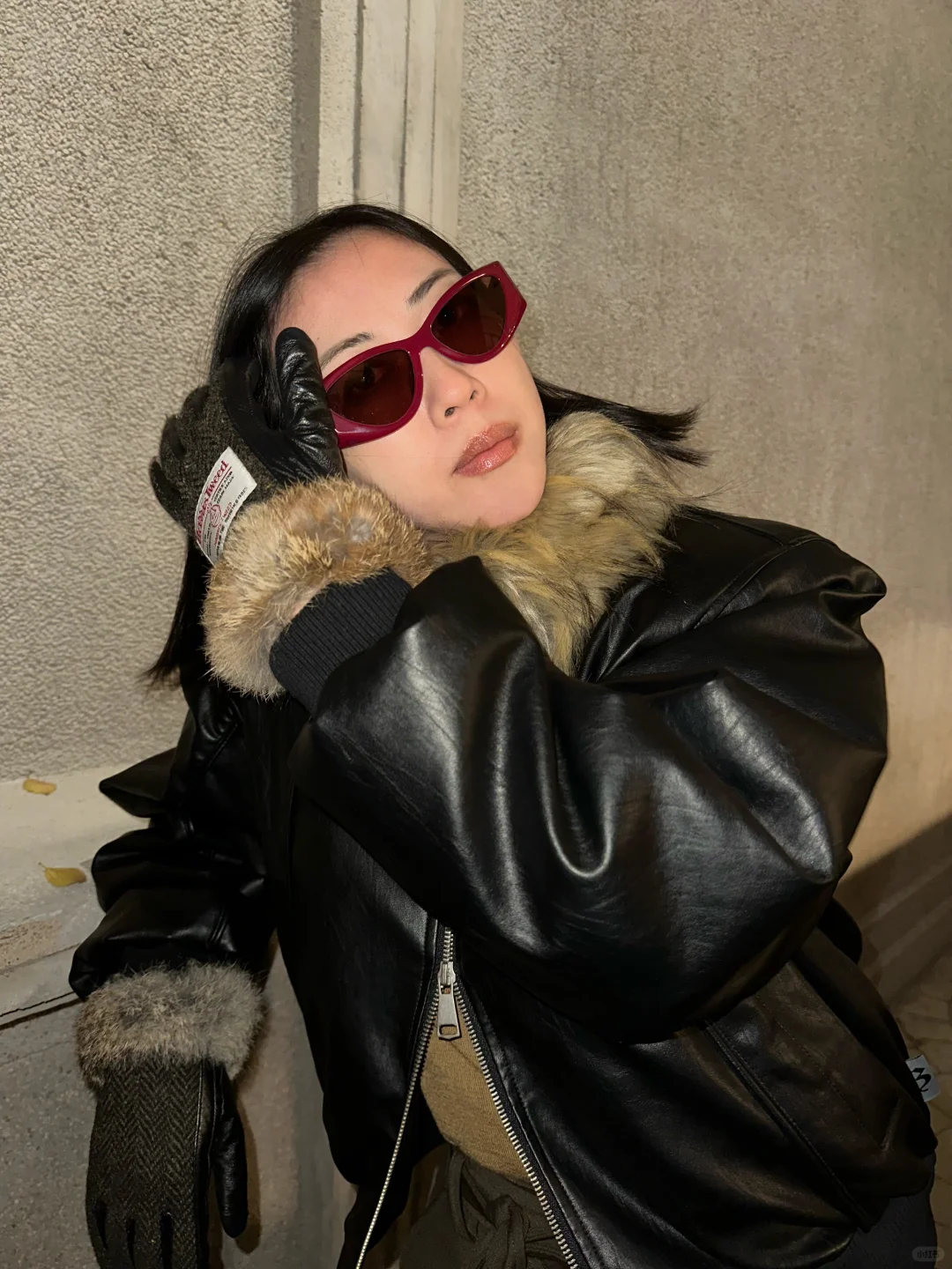Miumiu的这幅墨镜真的买对了!配任何都好看!毛领和皮手套也是冬日必备!
