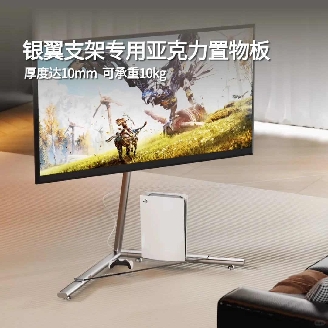 森茶应粉丝们要求 又推出了银翼电视支架专用的亚克力置物架 厚度可达10mm,承重10公斤 自带防滑垫,安全稳固 可安心放置ps5游戏机等电视配件 有了它设备再多也可以跟着你的电视 轻松移动到家中任何位置 现已上架店铺预售中