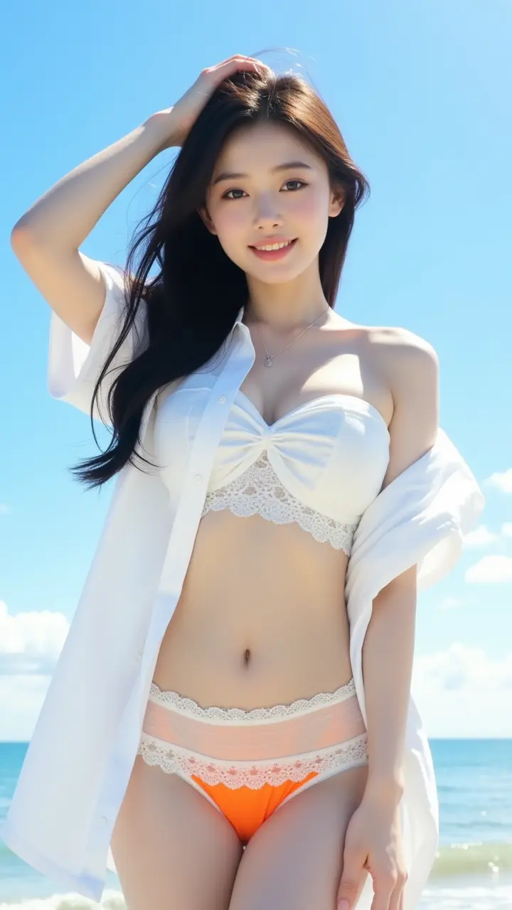 完美身材肤白貌美清纯甜美邻家女孩海滩美女