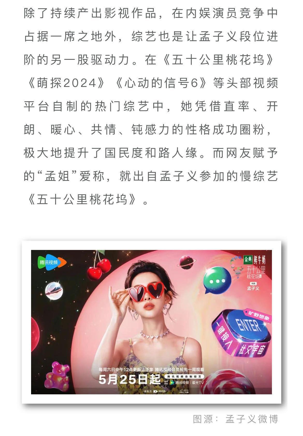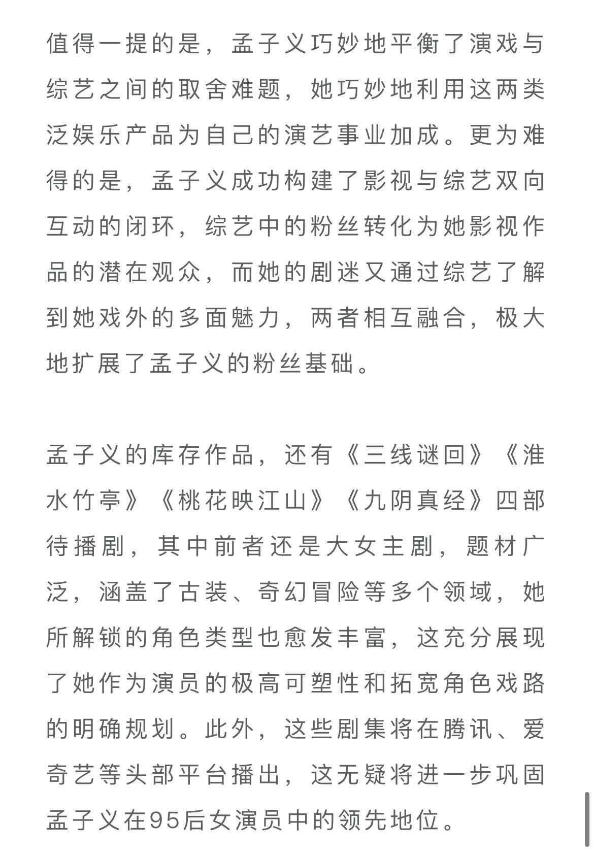 孟子义扛剧能力 孟子义剧综双开花 孟子义在综艺和影视方面都做出了优异的成绩,稳步跻身95花前列,扛剧能力有保障[举手]