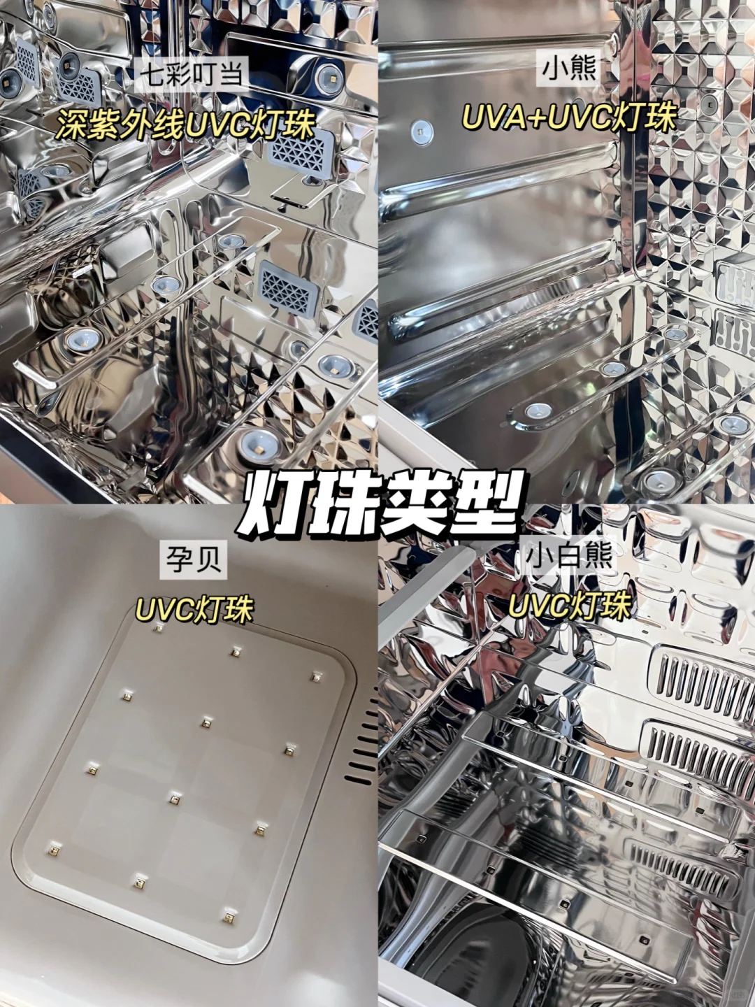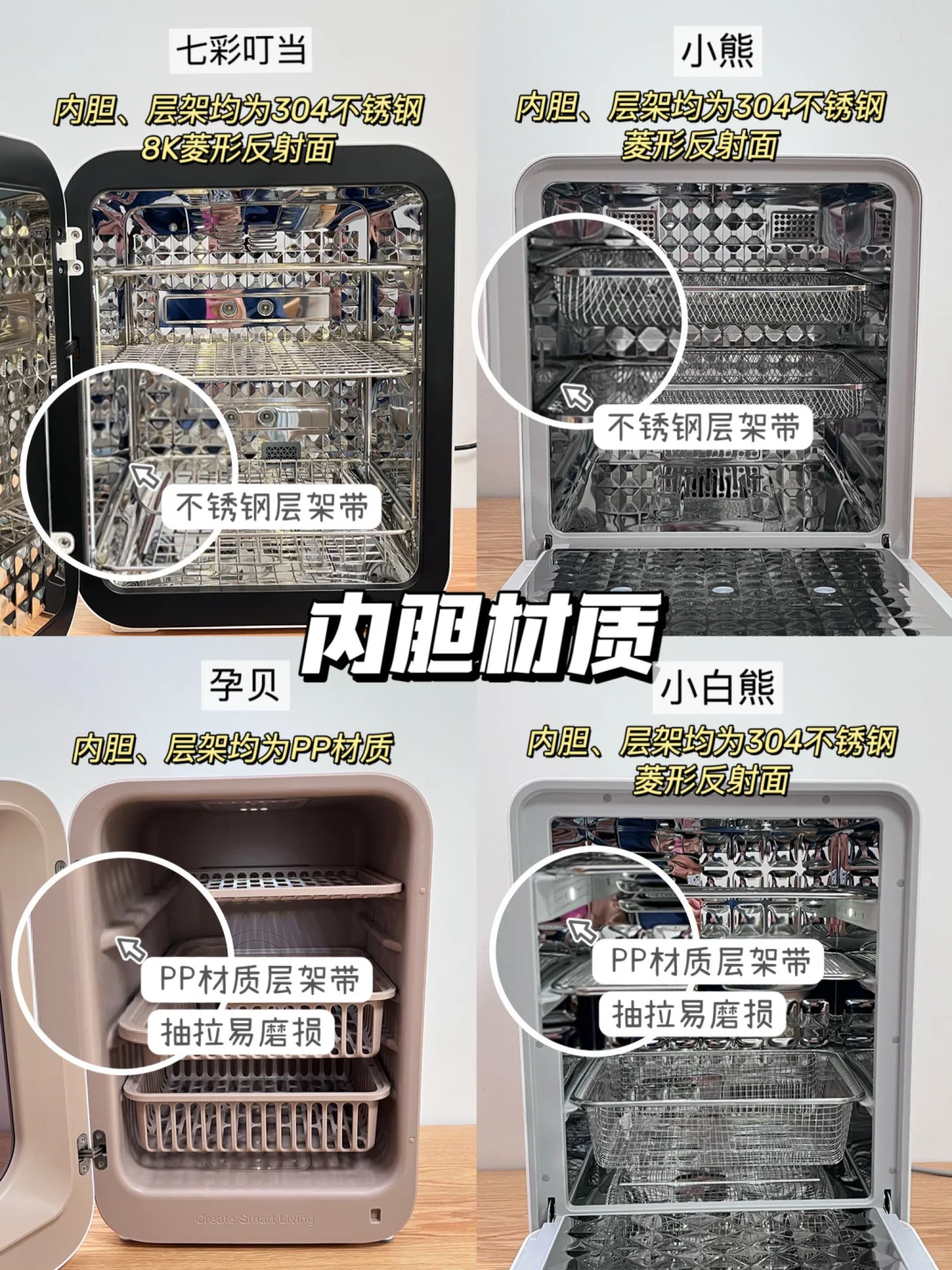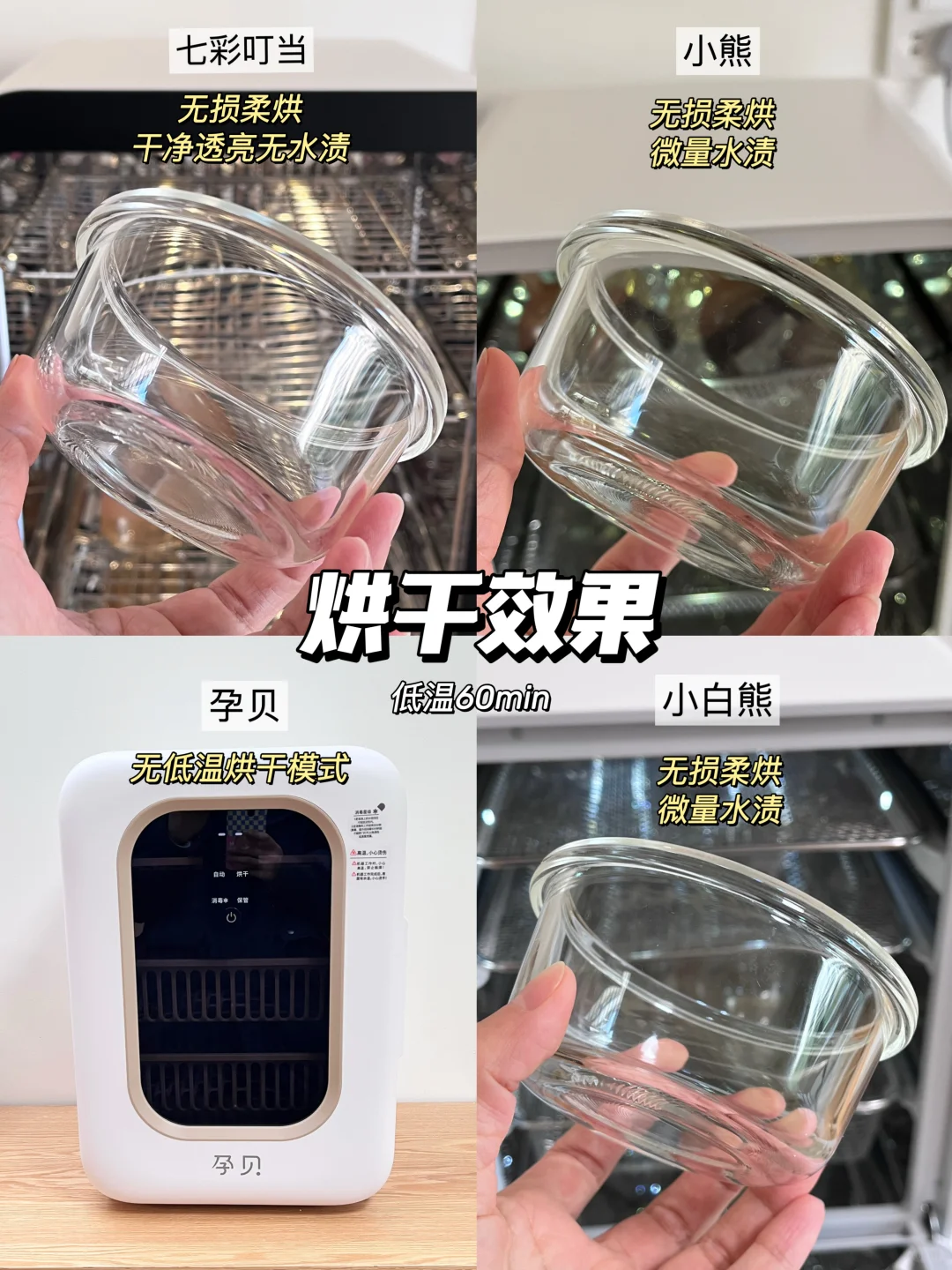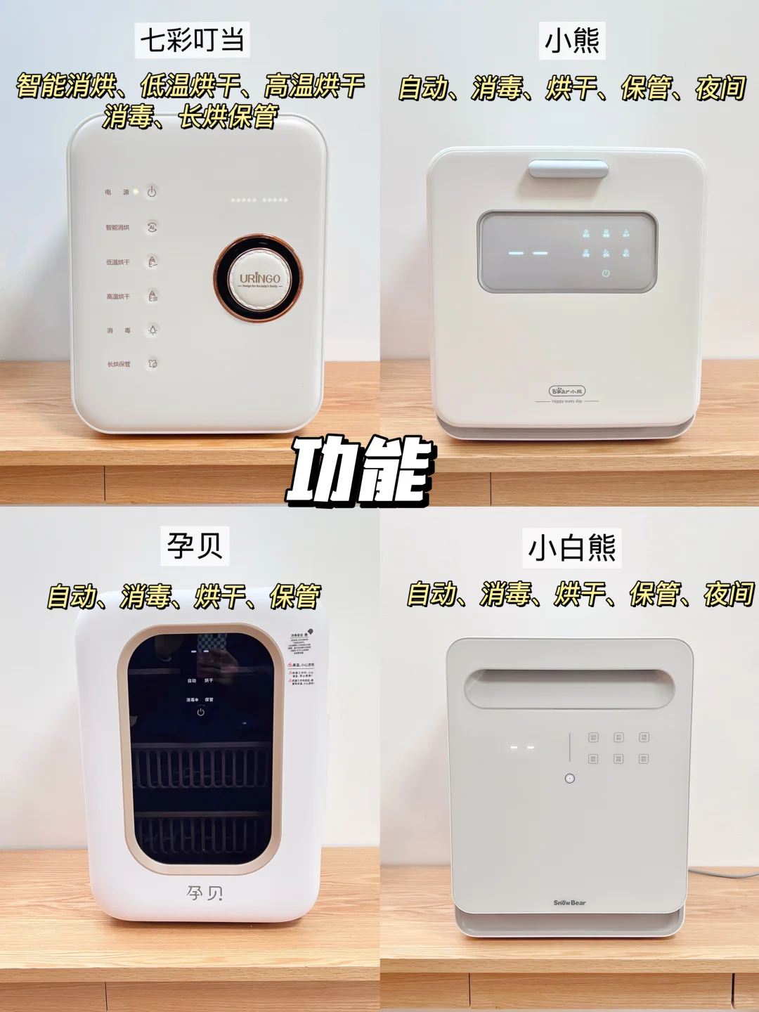 🛒我选了4款热门宝宝消毒柜实测,分别是七彩叮当消毒柜、小熊消毒柜、孕贝消毒柜、小白熊消毒柜,给需要的宝子们一个参考!测评细节可看图示,妈妈们可按需购买!