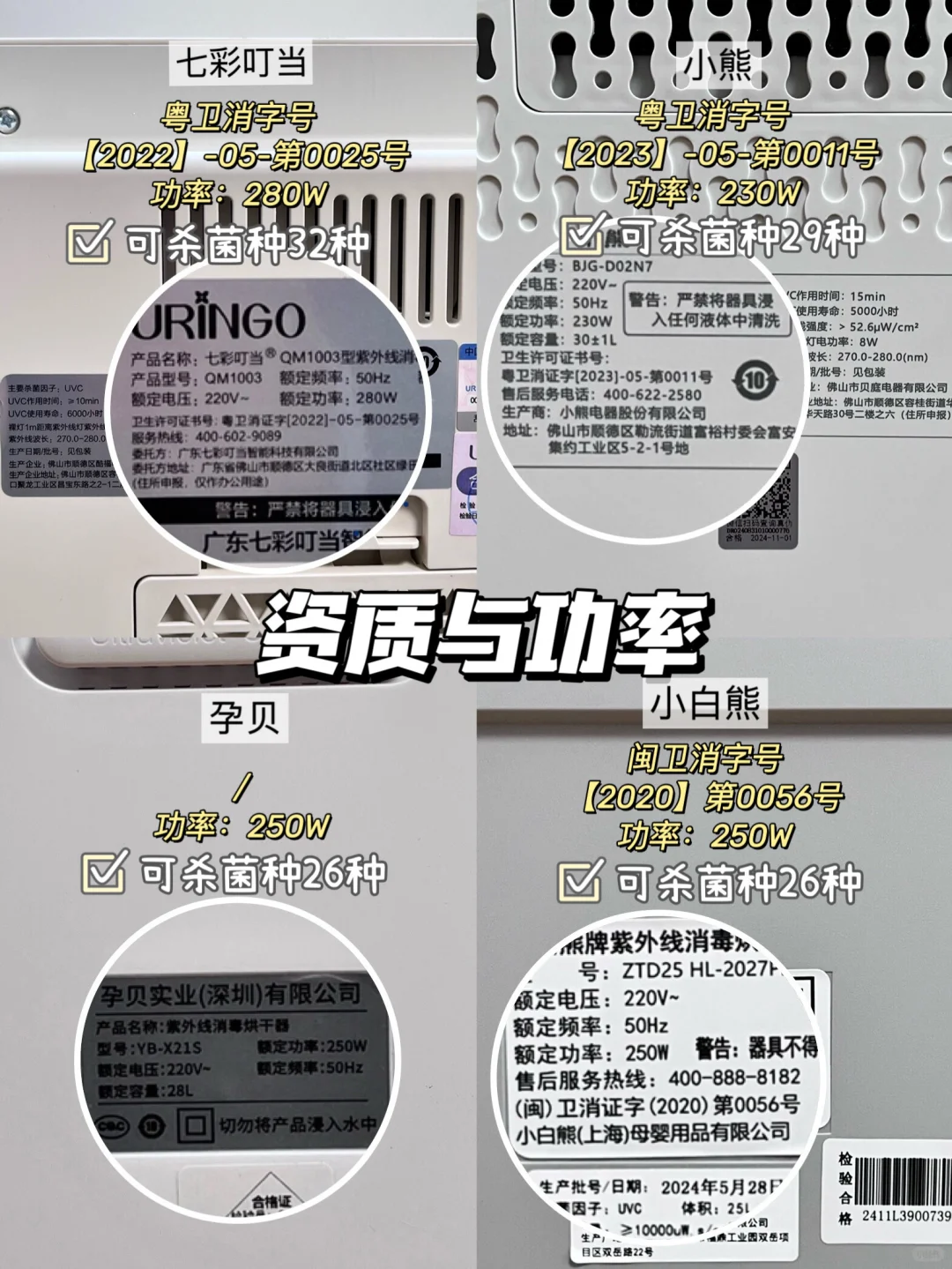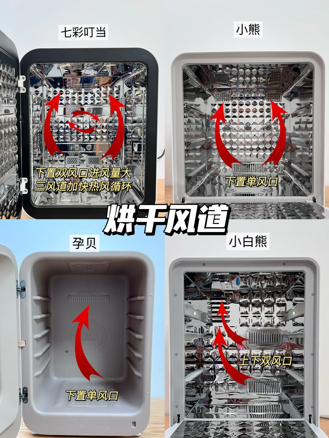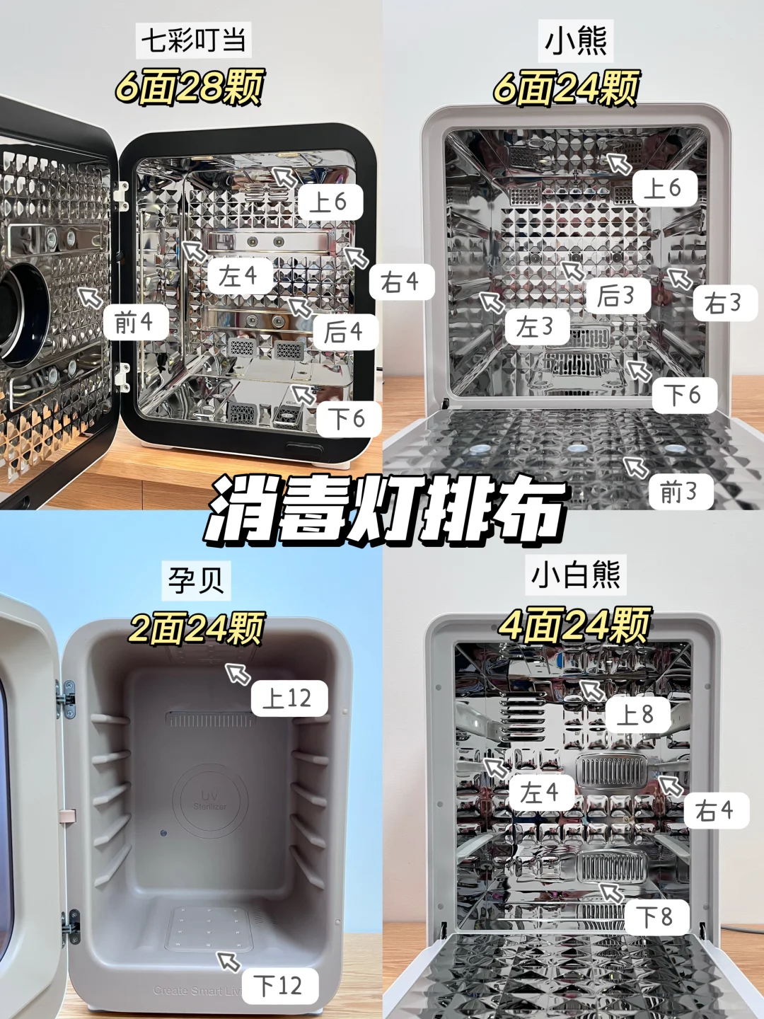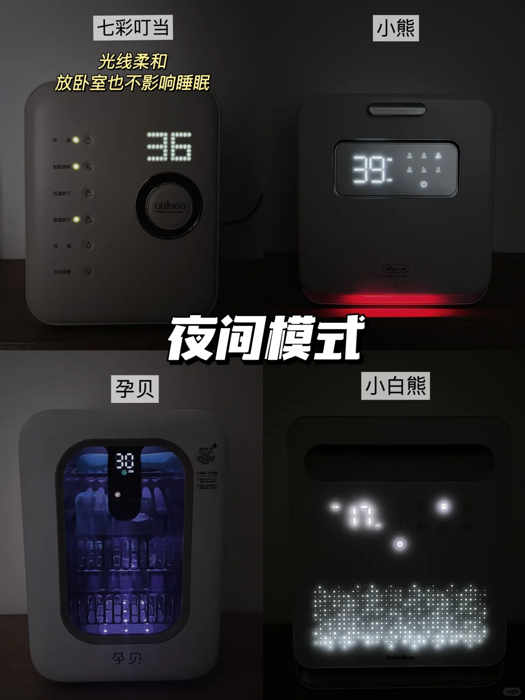 🛒我选了4款热门宝宝消毒柜实测,分别是七彩叮当消毒柜、小熊消毒柜、孕贝消毒柜、小白熊消毒柜,给需要的宝子们一个参考!测评细节可看图示,妈妈们可按需购买!