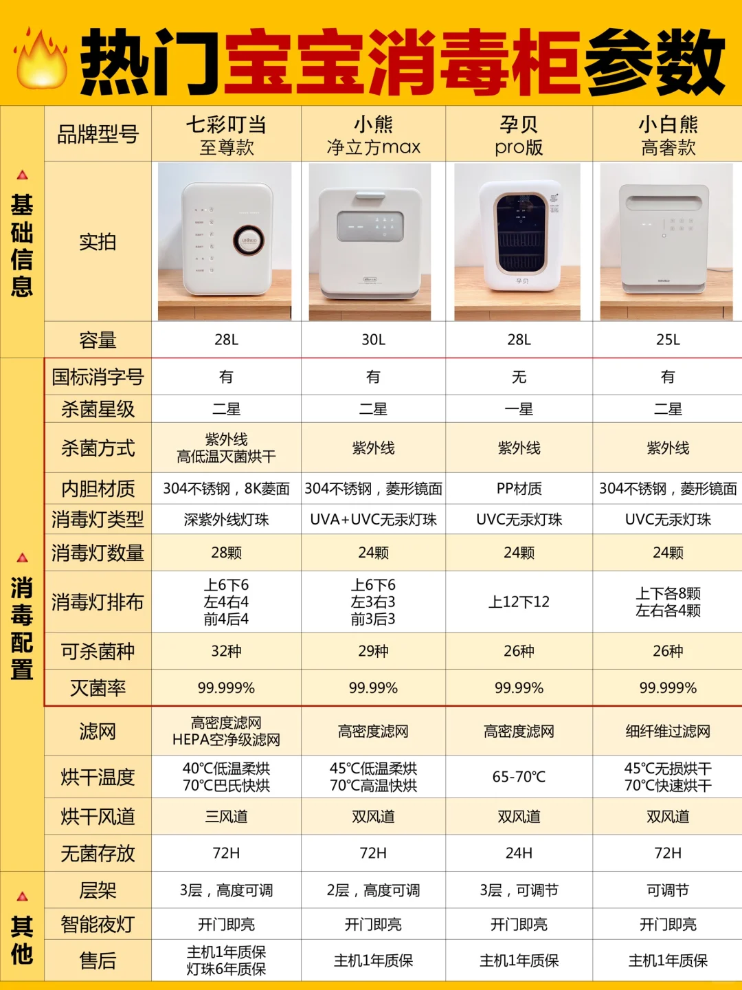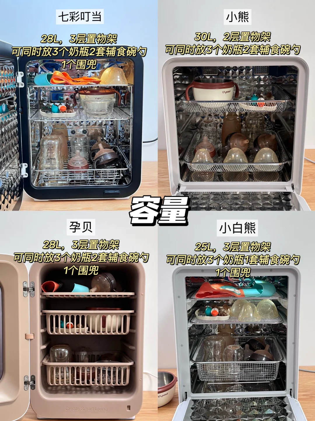 🔺买大不买小,大容量的消毒柜,不用分批消毒,一次就能把宝宝的奶瓶、辅食餐具等一次消毒!至少要24L+!