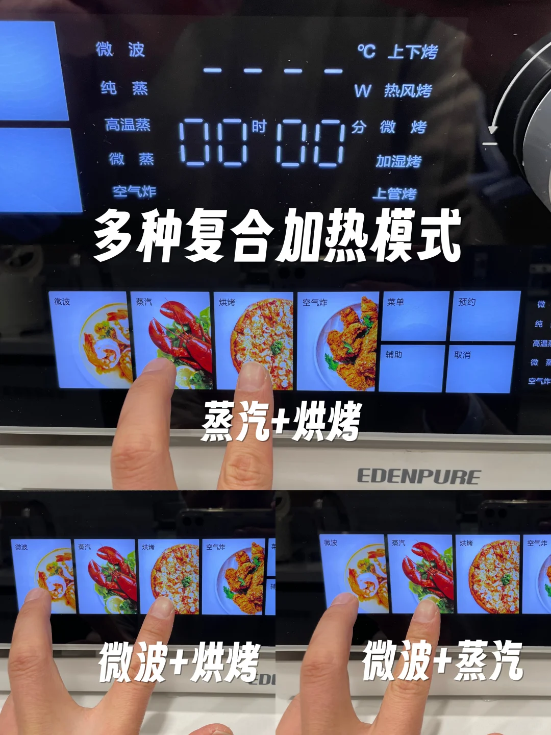 支持双动力复合烹饪模式,可微蒸、微烤、蒸烤组合使用,配合双风炉,食材烹饪更快更高效,加热也更均匀。