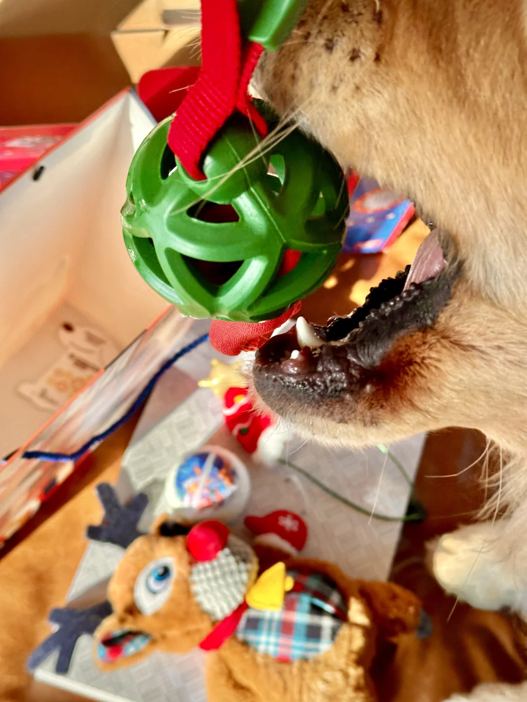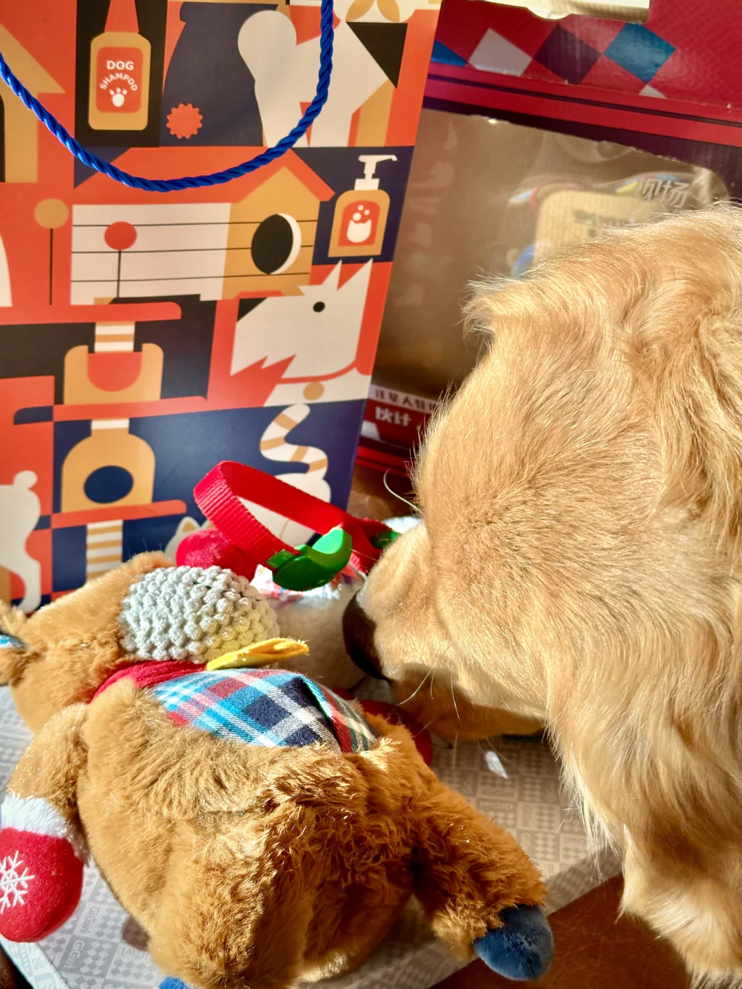 别看小黄现在只是一只小狗哦,他自己去探店赚钱,得到了一盒精美包装的圣诞礼物[大笑R] 小黄:我好厉害~自己赚来的玩具就是好玩呢~