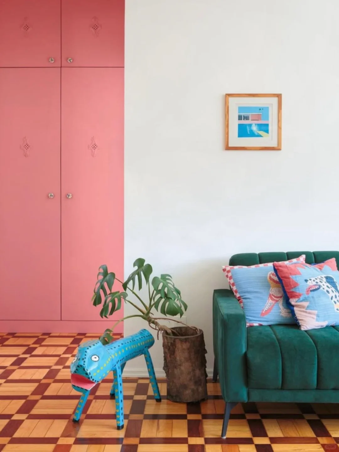 「灵感家居60」 踏入Camila Lamha的公寓,就像打开了通往路易斯·巴拉甘艺术世界的神秘之门! 每一面墙、每一个角落,都仿佛被色彩赋予了生命,它们跳跃、交织,诉说着一个关于光与影的故事。 🌿 而那些温暖的木材、柔软的纺织品,就像是时间的低语,轻轻告诉你:家,就是这样一个可以让人沉醉的地方。