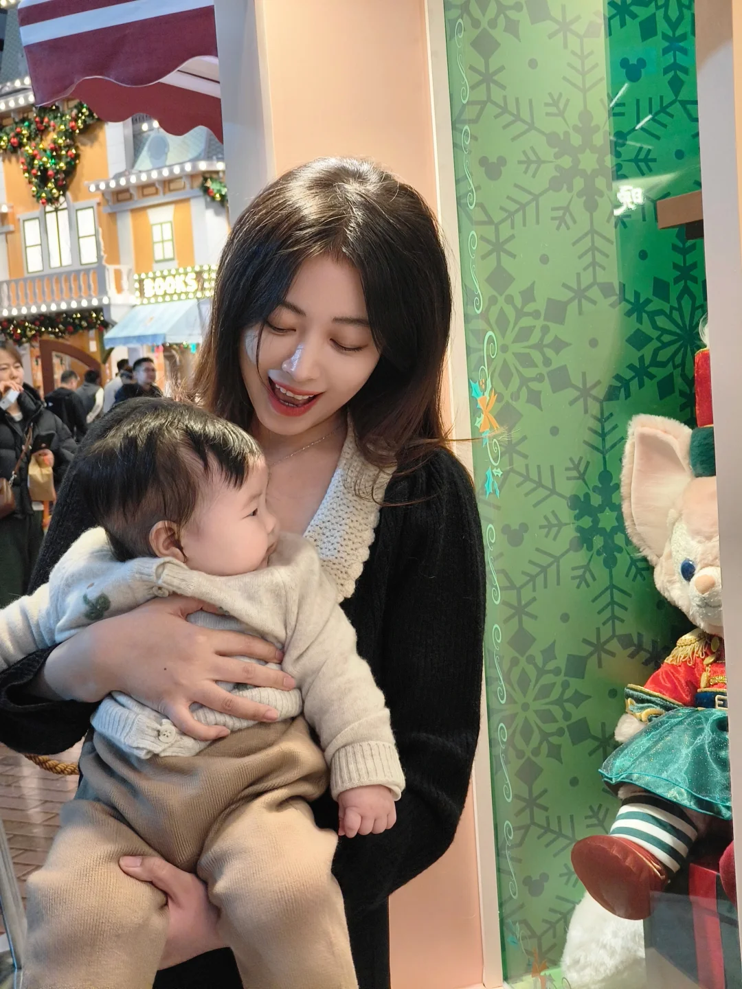年崽对玲娜贝儿,星黛露以及迪士尼小伙伴们充满喜爱,眼睛不眨的一直盯着看,看来在家玩妈妈的手办玩偶还是有印象的,小月龄宝宝👶🏻既能社交又能出门活动,感受下美好的圣诞🎄