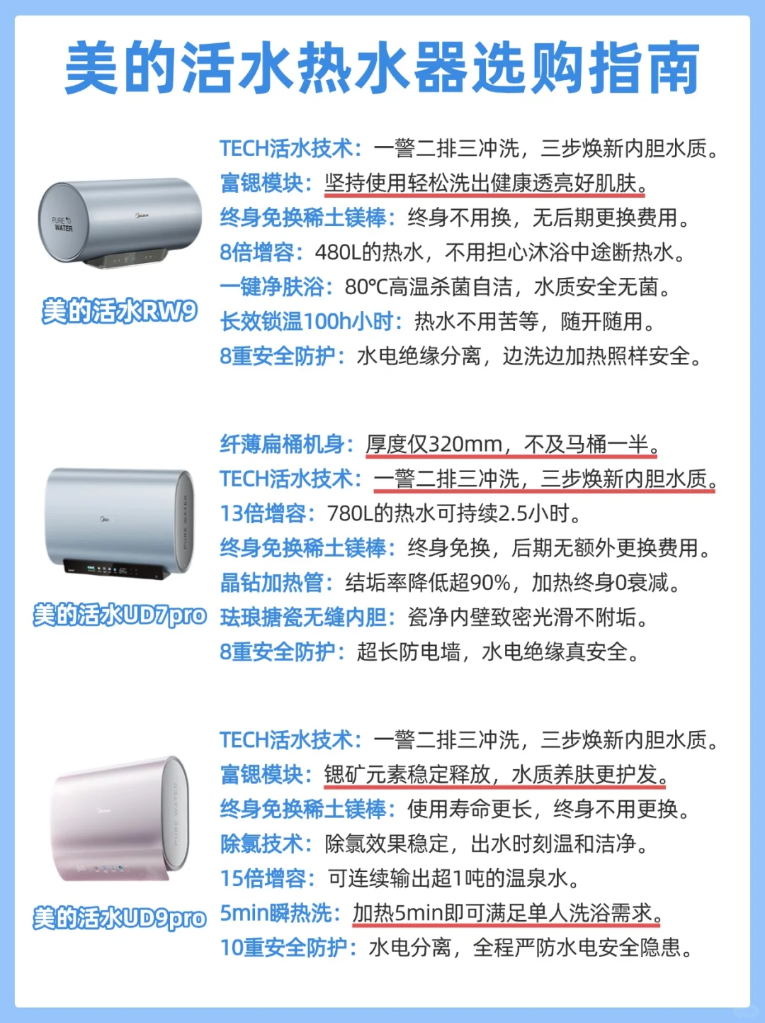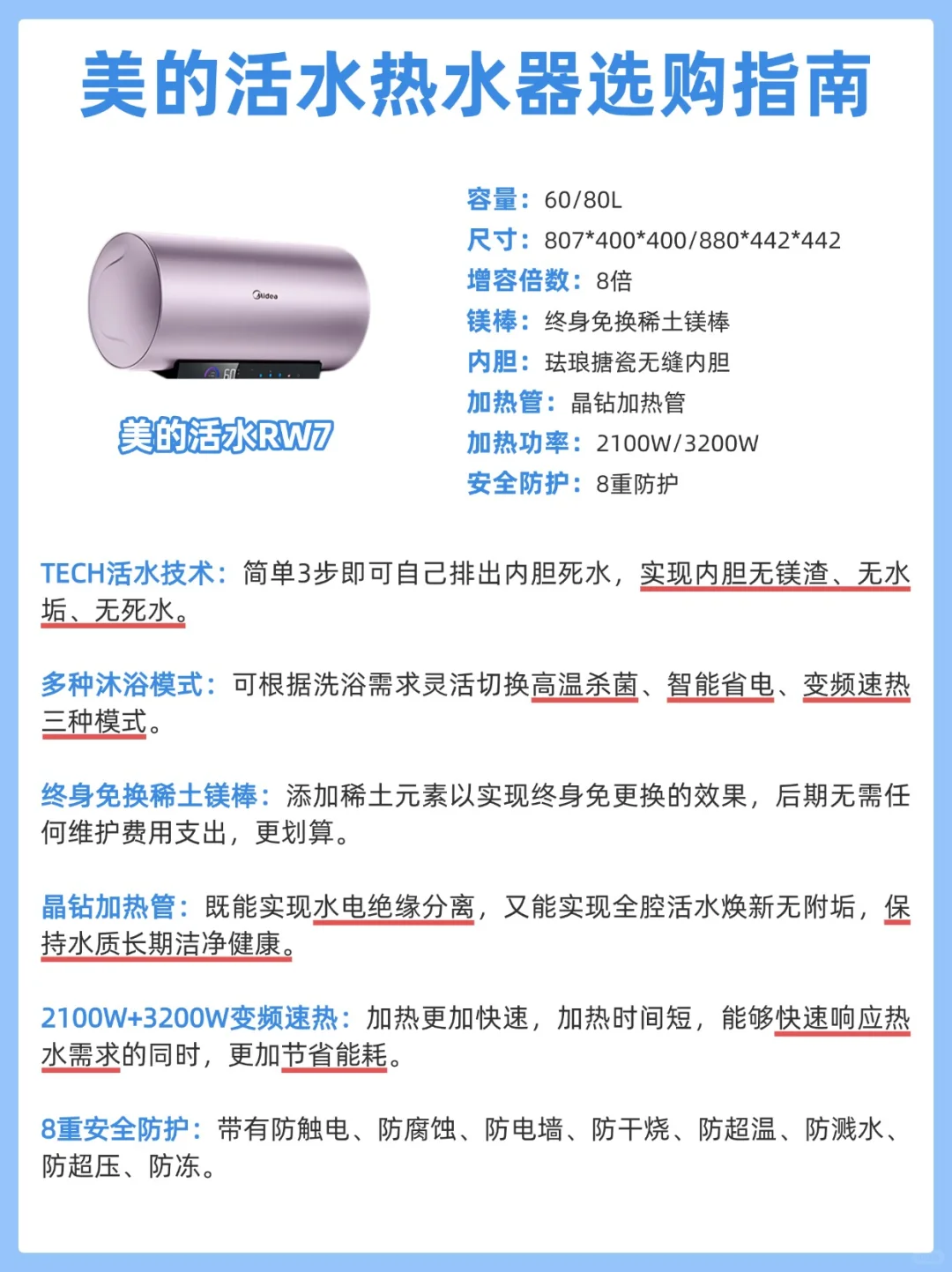 ⚠想要了解美的活水热水器更细致全面的数据,请移步图1,比较之后觉得哪款性价比高,且适合你家用呢?评论区告诉我哦!有其他关于热水器选购的问题也可以留言。