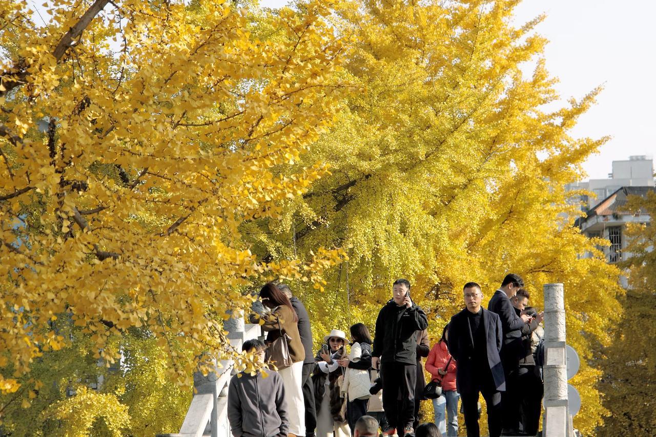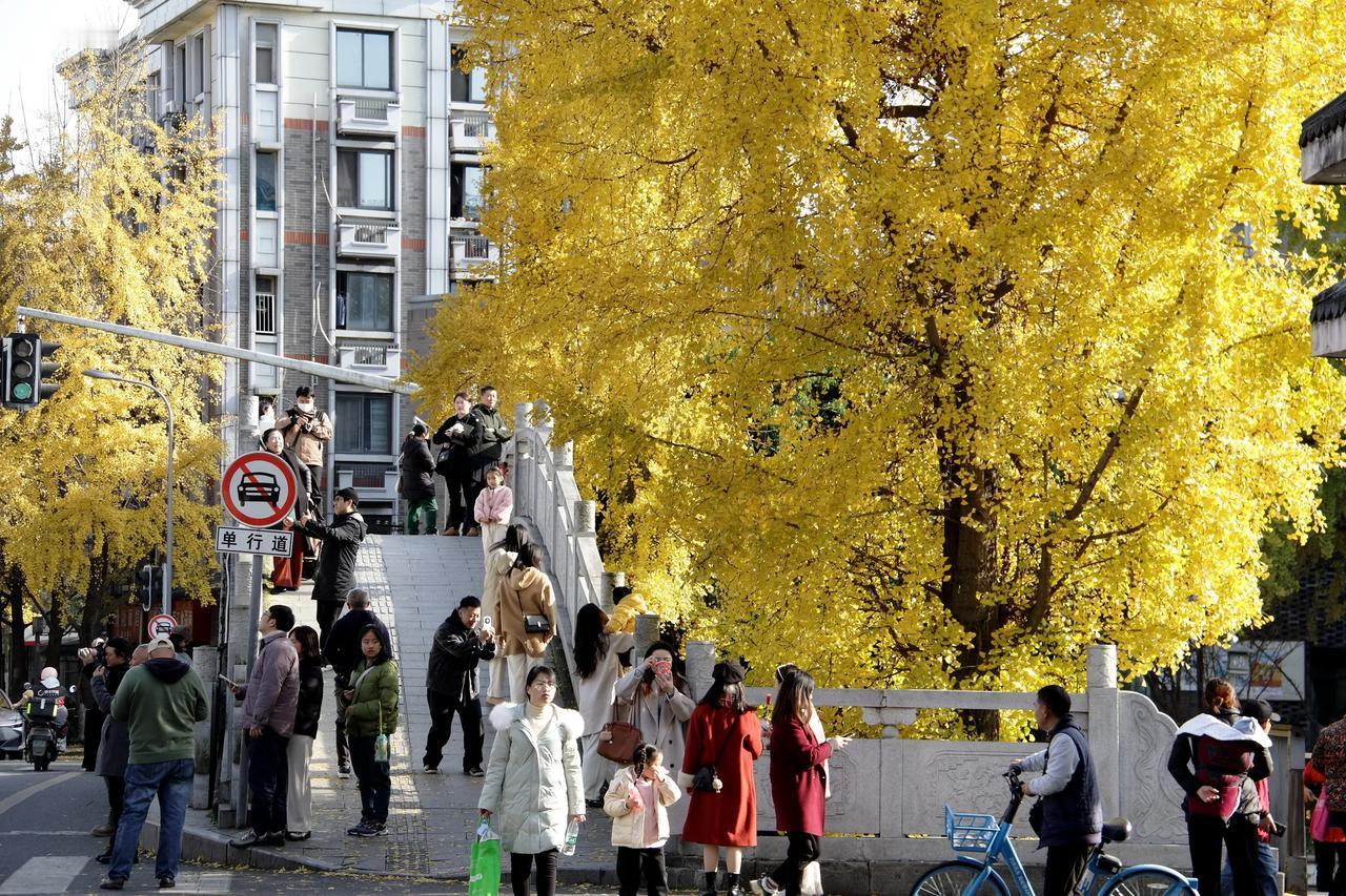 草堂周边银杏美,人多车多没奈何![赞][赞][赞]