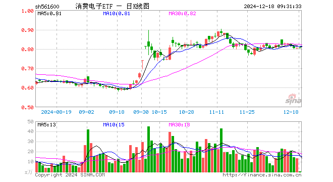 12月18日,消费电子ETF(561600)开盘涨0.12%,报0.805元。消费电子ETF(561600)重仓股方面,立讯精密开盘涨0.57%,京东方A涨0.00%,中芯国际涨0.77%,工业富联涨0.09%,韦尔股份涨0.21%,澜起科技涨0.51%,亿纬锂能涨0.38%,兆易创新跌0.41%,歌尔股份涨0.39%,寒武纪跌0.37%。
