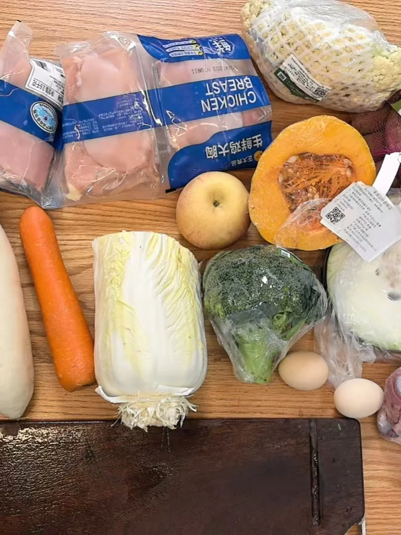 之前生了点小病,最近给他做狗饭吃,他本来以前出门走一会儿就累,最近坚持吃自制狗饭,这两天开始跑了,身体和精神状态明显好了很多[哇R] 真的很简单,做一顿可以吃三天,给大家分享一下做法: 肉类:鸡胸、虾、鸡心、牛肉都可以,自己选1-2种 菜:西兰花、白菜、南瓜,蔬菜可以自己选1-2种 主食:玉米面 狗狗真的好爱吃!下次分享纯享版干饭视频[喝奶茶R]