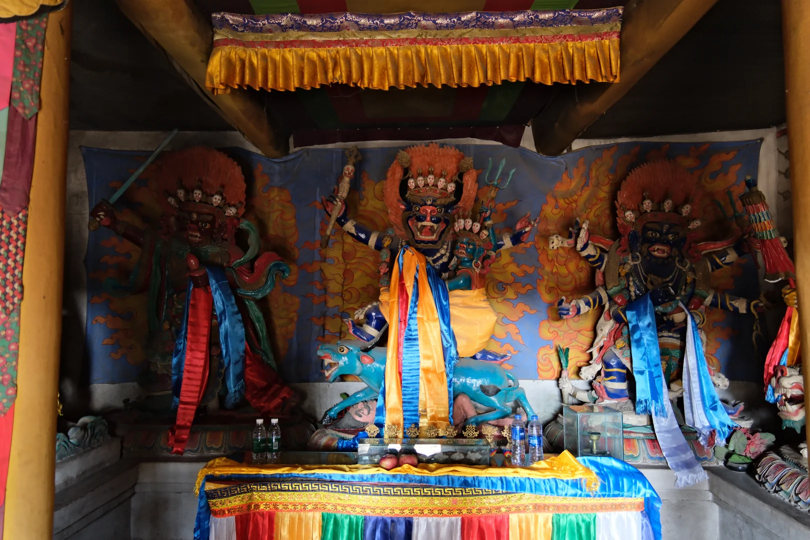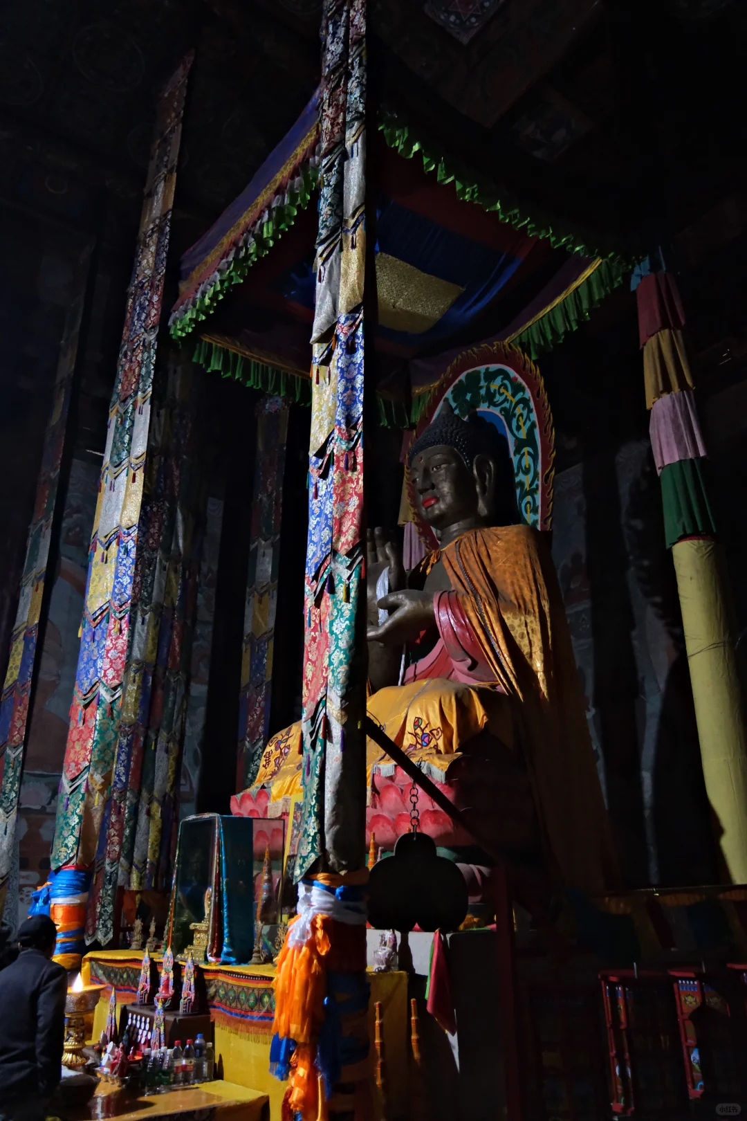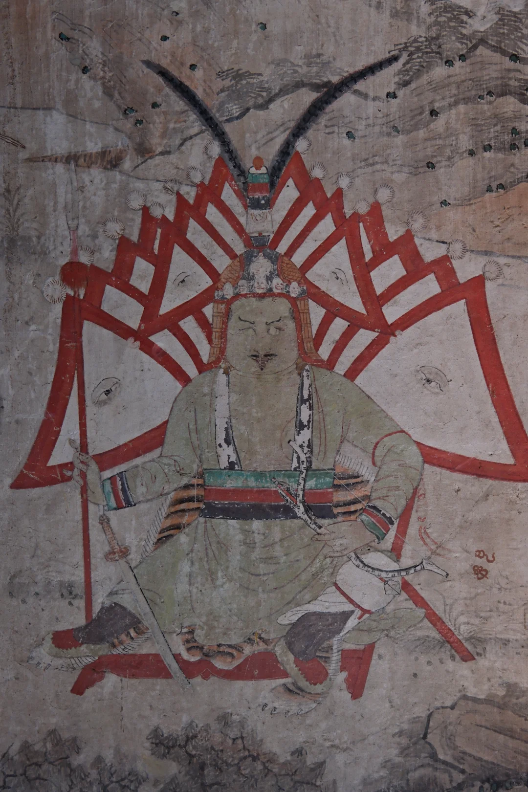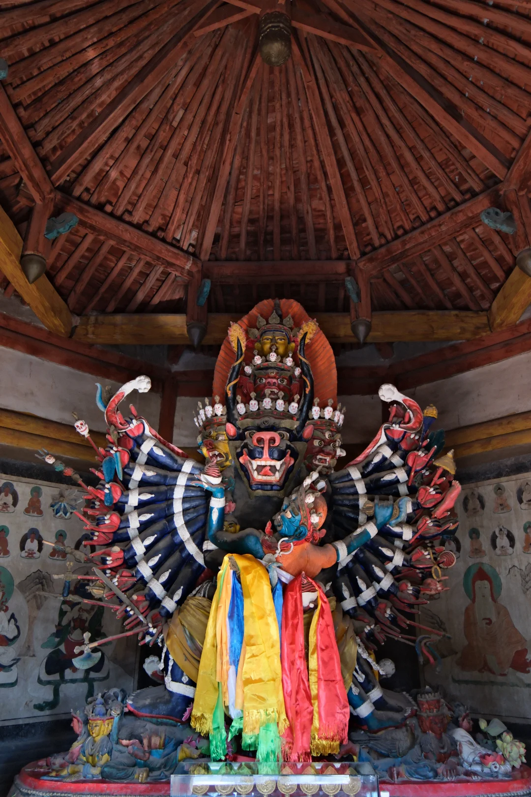美岱召寺内保存有大量壁画,尤以大雄宝殿内描绘蒙古贵族拜佛的场面的壁画最为珍贵。