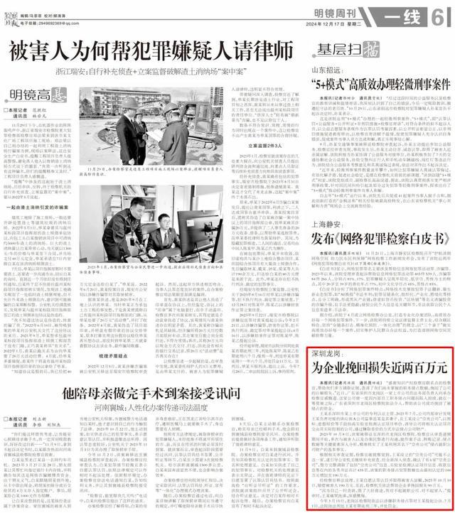 “感谢知识产权检察官联系点的检察官,帮助我们多方调取证据,查清了我们尚未掌握的职务侵占数额,挽回了公司的巨额损失。”近日,深圳市龙岗区一家上市公司的法务部负责人向承办检察官感慨道。这家公司曾一度因内部员工职务侵占问题而陷入困境,就在一筹莫展之际,深圳市龙岗区人民检察院依法介入,帮助该公司成功挽回了被侵占的资金。