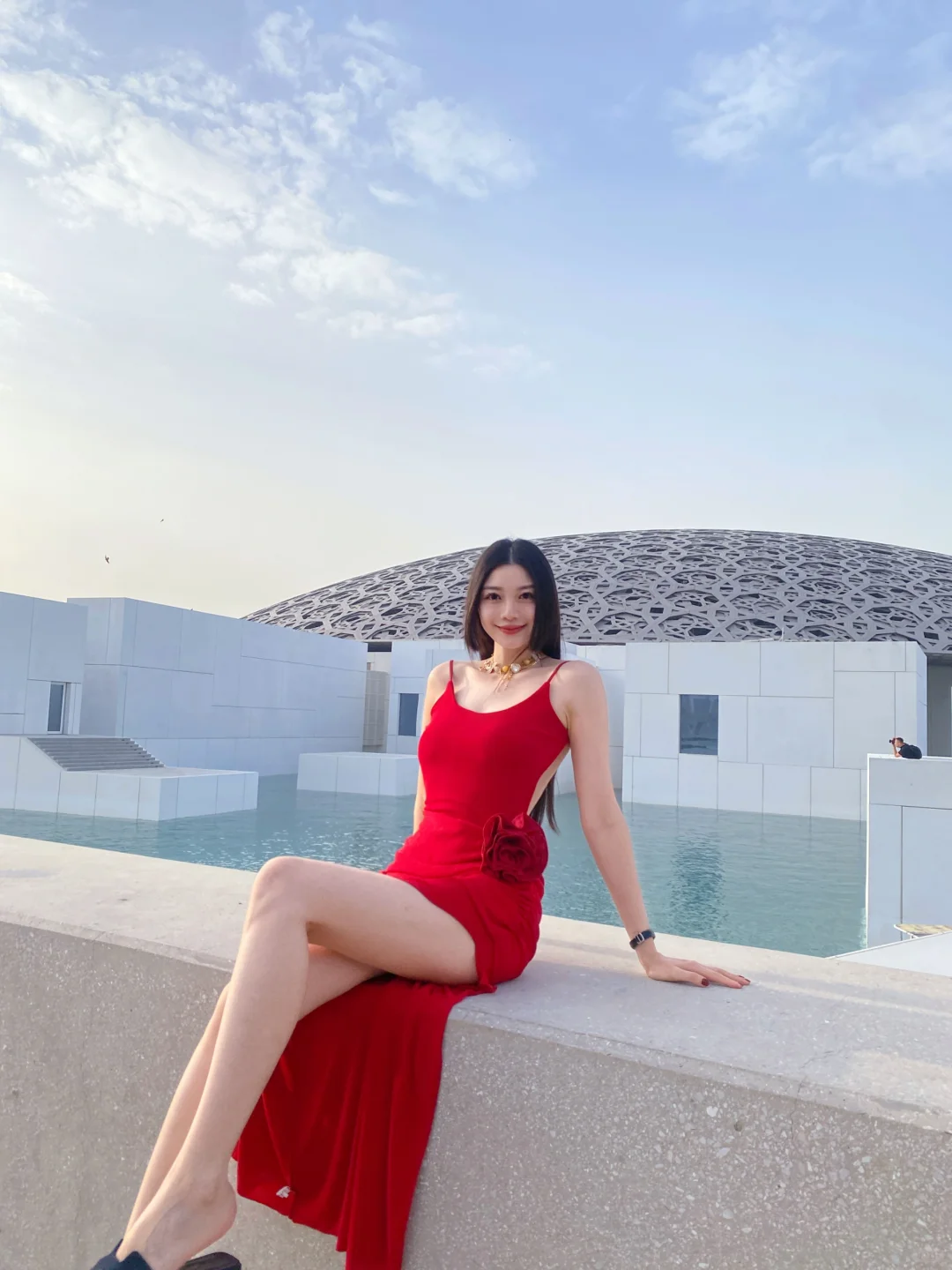 阿布扎比海上卢浮宫周杰伦同款机位刘亦菲阿布扎比阿布扎比红色系背影杀阿布扎比卢浮宫海上T台蒙娜丽莎光影