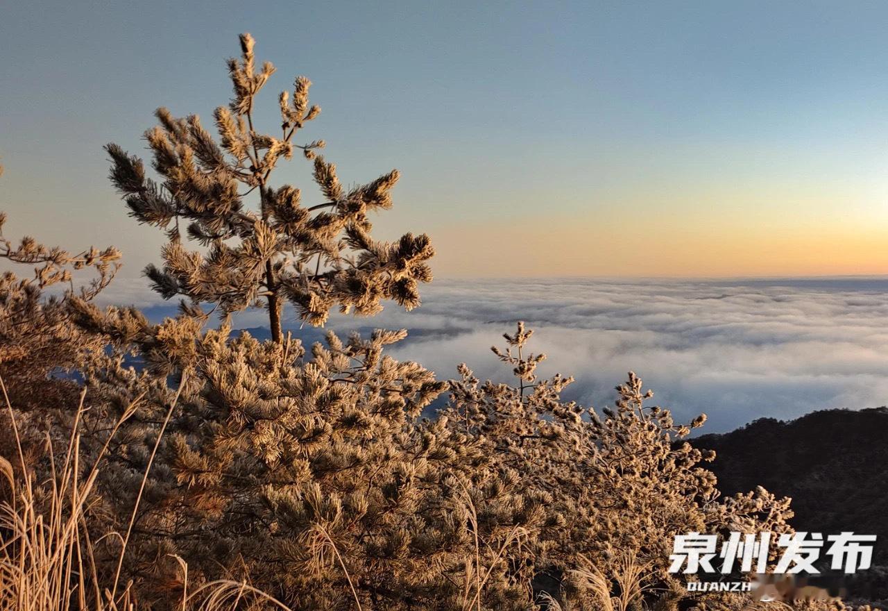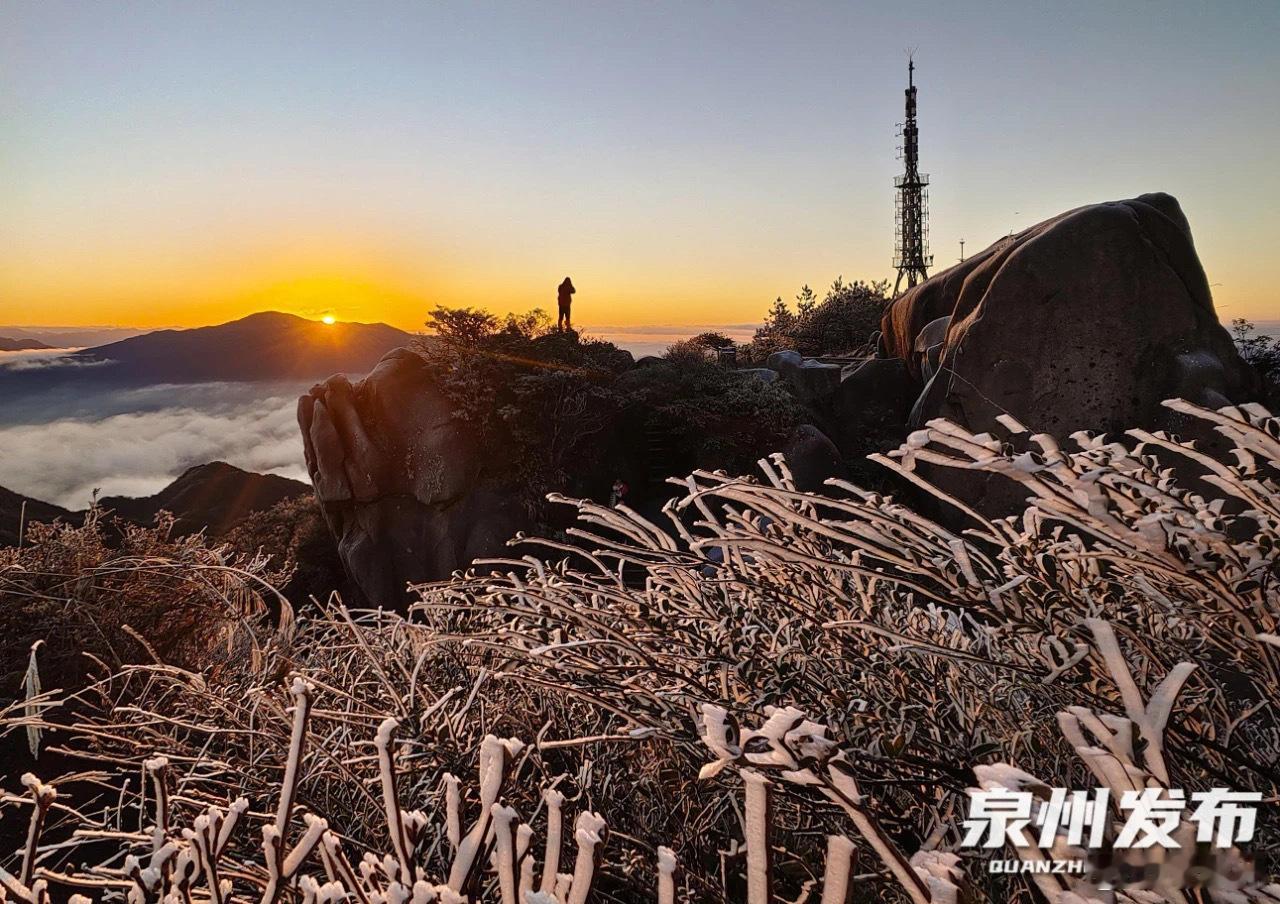 6时49分,初升的暖阳从戴云山的边缘探出了头,山间的云海,山坡的雾凇,山巅的气象站,瞬间被“点亮”。温暖的光芒,抚摸着人们的脸庞,也为眼前的一切,涂上了金色的油彩。随着太阳越升越高,云海持续了大约一小时散去,晶莹剔透的雾凇,也开始消融。 泉州[超话]