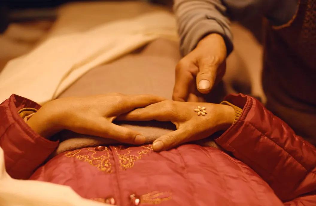 麦子1824斤,除掉水份后算1700斤,苞谷3997斤,除掉水份算3800斤,总共卖了3974块钱,还要抹掉4块零头。收粮食的商人嘴巴一张一合,除掉的水分,实际上是一个老实农民的血汗。 《隐入尘烟》里的马有铁,老实了一辈子,被身边的人不同程度地压榨着。给亲哥哥当了半辈子免费劳动力,一把年纪了,才娶上身体残疾的媳妇贵英。结婚时,哥哥连瓶喜酒都没为他准备,他一无所有,只能住在别人闲置多年的小泥屋里。 即便如此,他终究有个伴儿了。尽管贵英有很多毛病,手痉挛,跛脚,尿失禁,却是他生命中最温暖明亮的那抹光。 土地承包商重病住院,需要输血。村里人怕他死了,自己的钱要不回来,就一起到有铁家里,请求有铁去献血。因为只有有铁附和献血条件,他的血型是稀有的“熊猫血”。 这个一辈子不会拒绝别人的老实人,不知道该如何是好。是贵英第一次替他说出了“不”字。贵英说:“不献。”但有铁终究还是去了。 一次,两次,三次,有铁被要求去献血。在献血车上,护士扎上管子就出去了,没人守着有铁,只有贵英担心地看着自己的男人,心疼得恨不得抽自己的血。 在别人眼里,有铁是一个微不足道的人,乡亲们甚至不记得他的名字。 他像驴子一样命贱,被亲人使唤着出卖苦力;像麦子一样,只能被镰刀割掉,被磨盘磨掉;像燕子一样,飞来飞去,劳碌奔波,只为寻觅一点温暖,一个归宿,却只能被迫一次次挪窝,在废墟里怅惘。 时间久了,或许他都已麻木了,不记得自己作为“人”的模样了。而贵英就像一面镜子,一抹微光,让他看见了自己。 在贵英那里,他知道自己是个有血有肉,有喜怒哀乐的人。他的委屈、他的无奈,也都被贵英看见和包容,他的善良、温柔和浪漫,只有贵英懂得,只有贵英珍视。 或者说,有铁和贵英这两个被亲人抛弃的人,就像一朵不起眼的云遇见了一阵不经意的风,自此天空的一隅便变得多姿多彩。 尽管没有人看见,没有人注意,但云和风却第一次体验到了生命的舒展,还有爱、温暖以及尊重。 这部电影虽然压抑,悲凉,但也很温暖,很细腻动人。有几个场景,我记忆深刻: 比如,有铁和贵英一起用鸡蛋孵小鸡,纸箱里射出来的光,宛如漫天的星光,而比星光更灿烂的是两个人脸上的笑容。 比如,有铁和贵英用麦子在手上印出的花朵,那种贫苦中绽放的浪漫,格外珍贵、美好。 比如,有铁在泥屋的废墟里手捧燕子窝,他自己都没有住的地方,却还在担心燕子回来找不到自己的窝,这是一个多么温柔善良的男人。 再比如,有铁用水桶打水时,他会轻轻地把桶里的小蝌蚪放回池塘里。还有,有铁和贵英对驴子的那种亲昵和爱护,都让我们看到一种对生命的体恤和尊重。 这些柔软的瞬间,是生活中最珍贵的部分,却也是最容易被忽略的部分。 我想,生而为人,无论是在贫苦中挣扎,还是在为更好的生活而奋力拼搏,都别忘了打捞生活中细碎的温暖。因为正是这些美好的瞬间才串联出人生的意义。