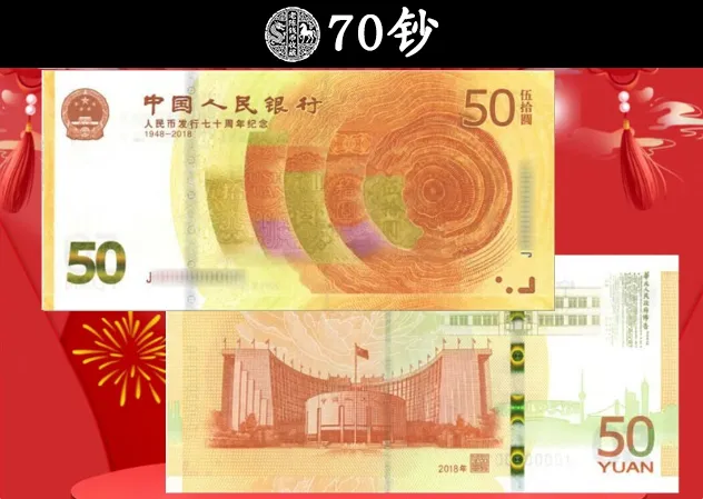 也就是上面这一张为纪念人民币发行七十周年而特意发行的50元纪念钞,所以很多朋友称这版纪念钞为“70钞”。这版50元纪念钞,发行量说实话,并不低,在2018年的时候,发行了1.2亿张呢!70钞在市场一直不温不火,现在快过了20年了,目前溢价可以说低得可怜。