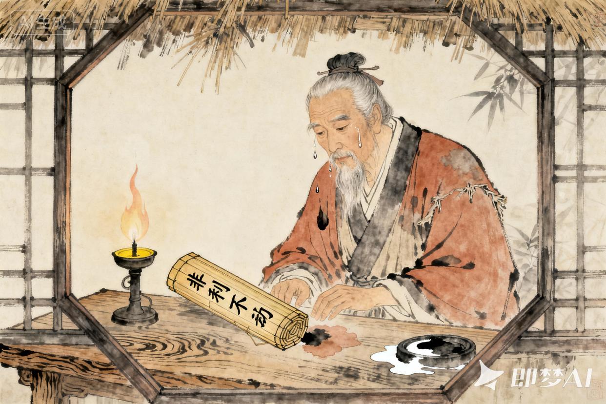 晚年的孙武,每天都在整理《孙子兵法》,有时会对着竹简发呆,想起年轻时在吴宫教战的场景,想起柏举之战的硝烟,还有伍子胥临死前的眼神。有次他写 “非利不动,非得不用,非危不战”,写着写着,眼泪就滴在了竹简上,把墨汁晕开了一片。他知道,后世的人可能只会用他的兵法去打仗,却忘了他写这部兵书的初衷是止战。临终前,他把《孙子兵法》交给了一个信任的弟子,嘱咐说 “若天下太平,就把它藏起来;若天下大乱,就把它传下去,让懂的人用它来止战”。说完,他闭上眼睛,手里还攥着那片刻着 “兵者,国之大事” 的竹简。