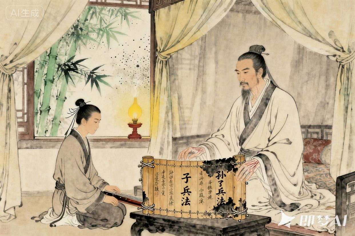阖闾十九年深秋,姑苏城外的枫红得像燃着的火。孙武拄着根桃木杖,站在茅屋前的石阶上,望着远处太湖的水波。风卷着落叶落在他的青布袍角,他低头拂去时,指腹触到袍料上磨出的毛边 —— 这袍子还是当年吴王赐的,如今已穿了十余年。屋里的油灯还亮着,案上摊开的竹简沾着松烟墨,最上面那片刻着 “兵者,国之大事,死生之地,存亡之道,不可不察也”,笔锋刚劲,是他年轻时的字迹。他咳嗽了两声,扶着门框进屋,指尖在竹简上轻轻划过,忽然想起二十年前,在吴宫的练兵场上,那些被他斩了的美姬,还有吴王阖闾又惊又怒的脸。