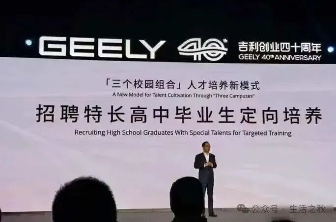 下图:吉利控股集团启动“跨时代跃迁人才培养计划”,面向全国高中毕业生开放(图源:私域商业观察)